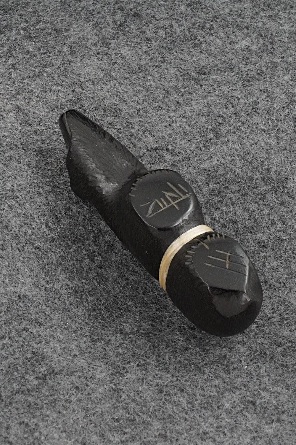 This bear Zuni fetish was carved by Herbert Halate. The bottom is signed H and Zuni.