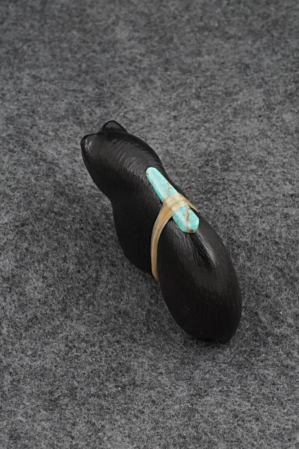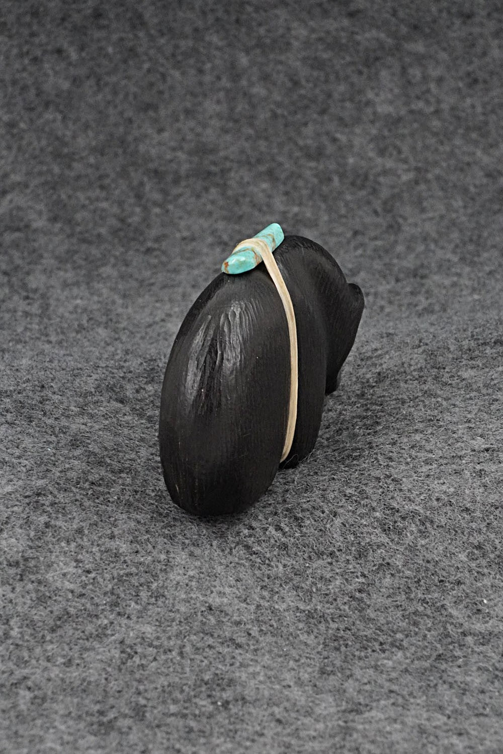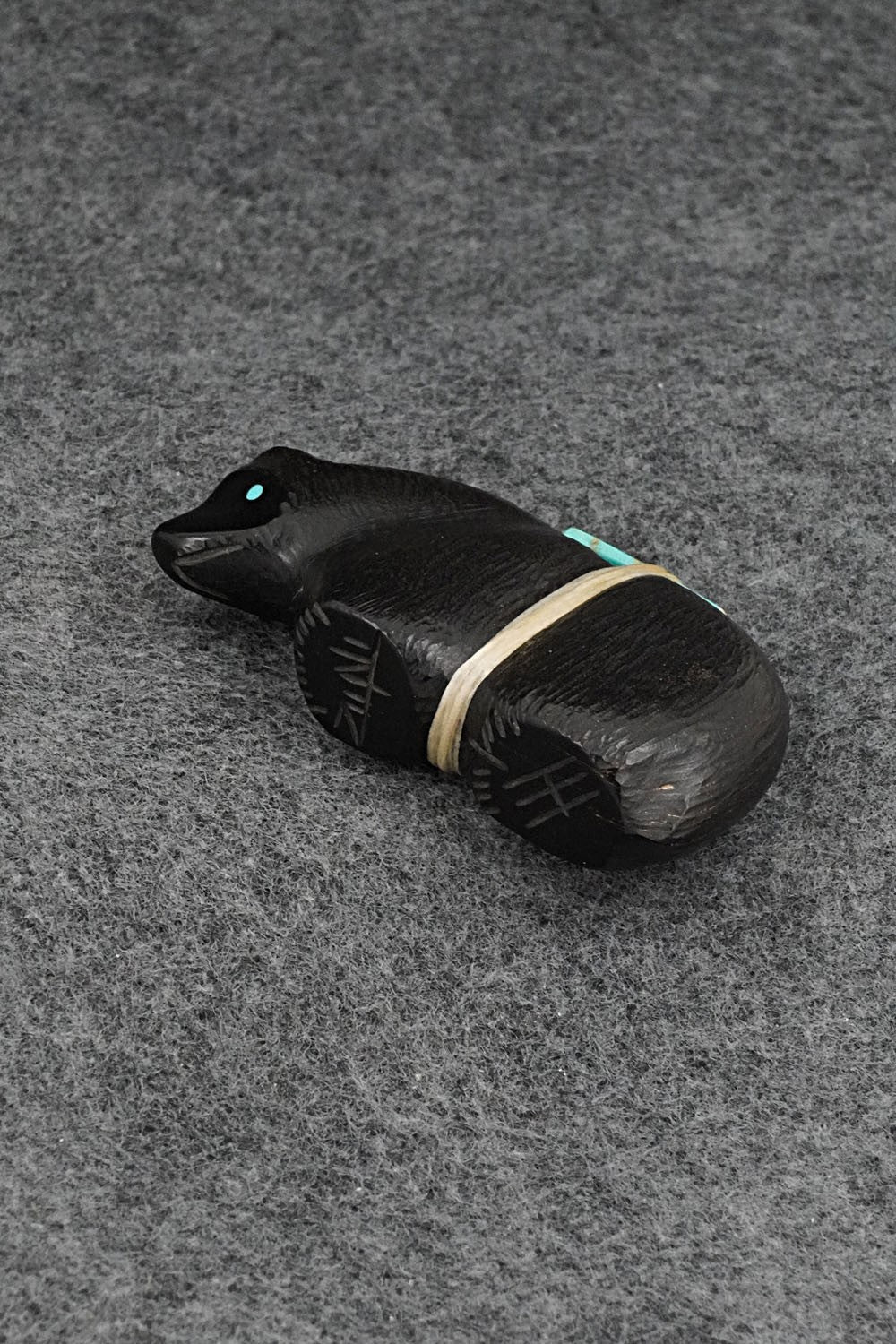 This bear Zuni fetish was carved by Herbert Halate. The bottom is signed H and Zuni.