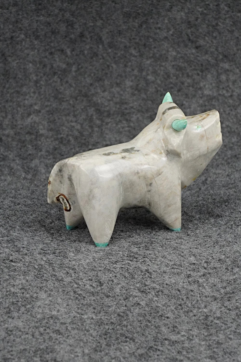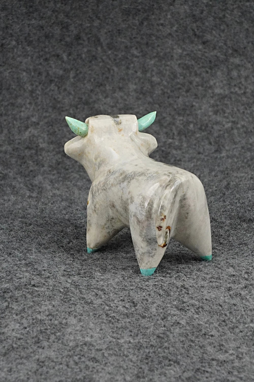 This bull Zuni fetish was carved by Enrike Leekya. The bottom is signed EL.