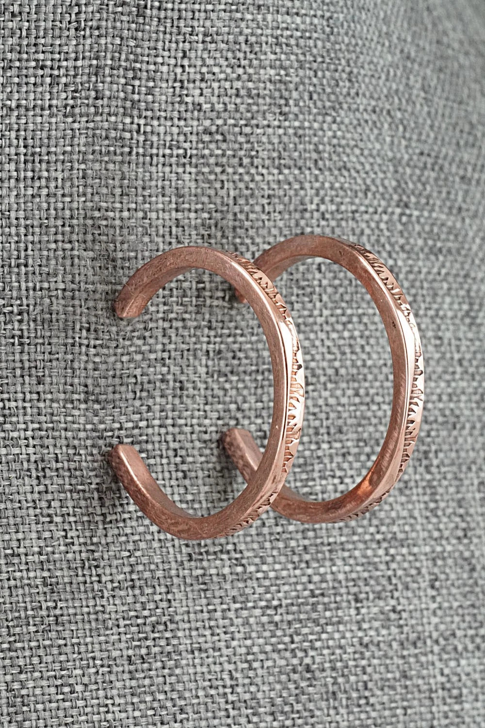 This pair of bright-polish copper hoop earrings were made by Navajo silversmith Elaine Tahe.