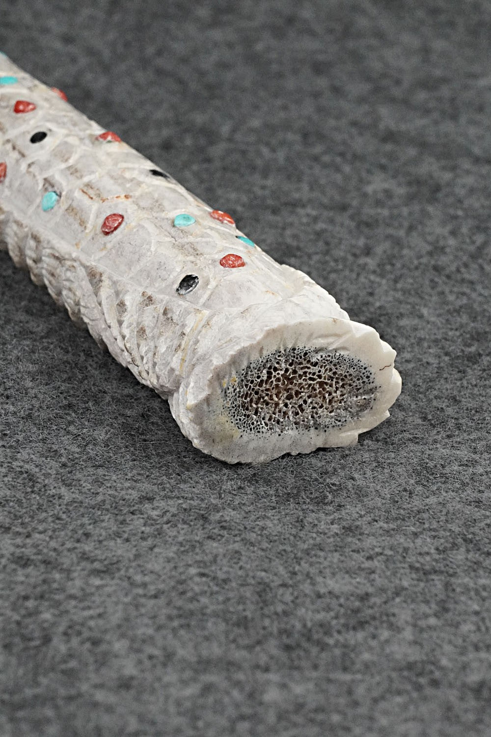 This corn maiden Zuni fetish was carved by Garrick Weeka. The bottom is signed GW and ZNM.