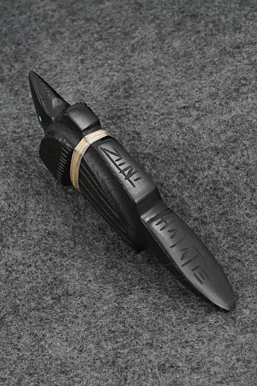 This crow Zuni fetish was carved by Herbert Halate. The bottom is signed Halate and Zuni.