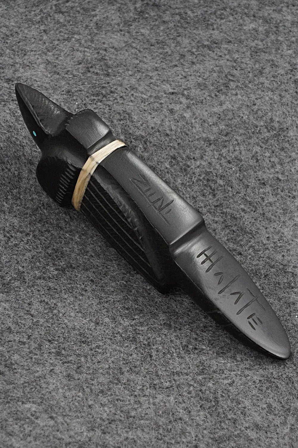 This crow Zuni fetish was carved by Herbert Halate. The bottom is signed Halate and Zuni.