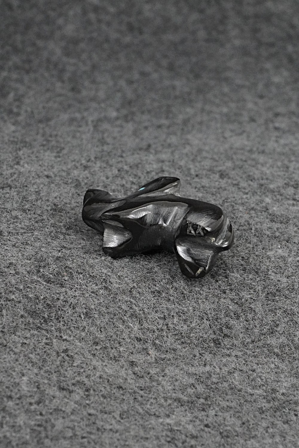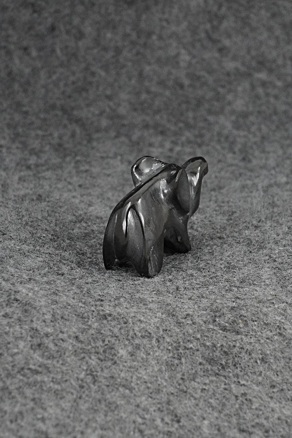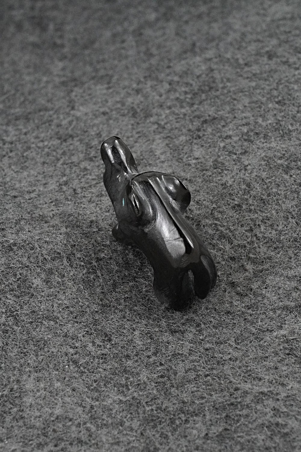 This elephant Zuni fetish was carved by Calvert Bowannie. The bottom is signed CB.