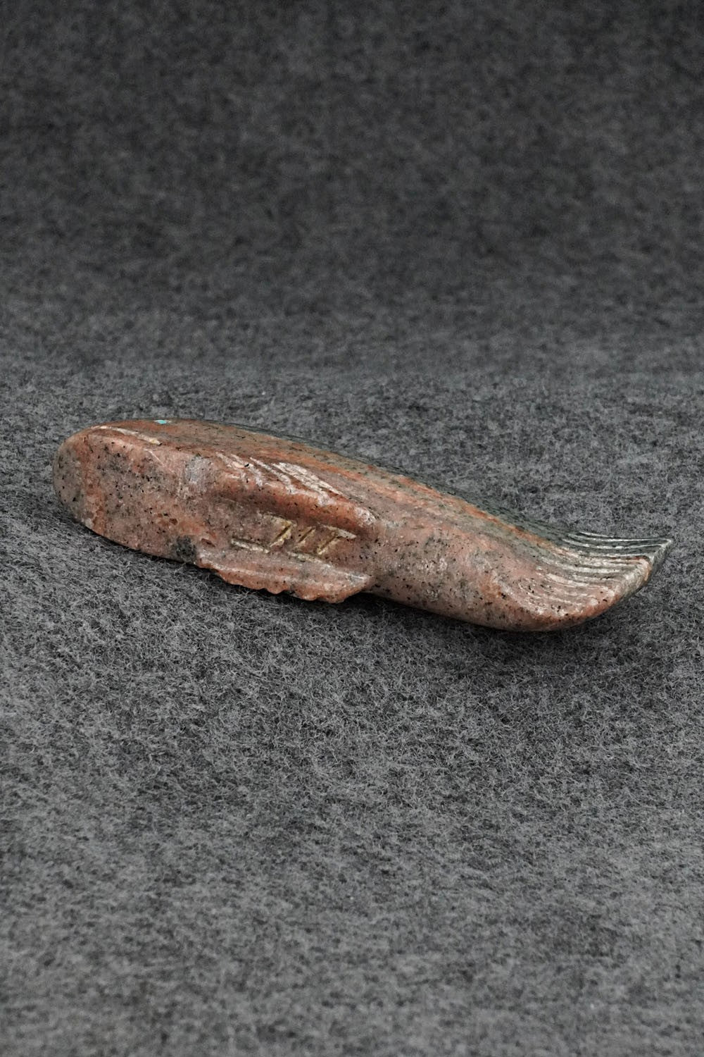 This fish Zuni fetish was carved by David Chavez. The bottom is signed DC.