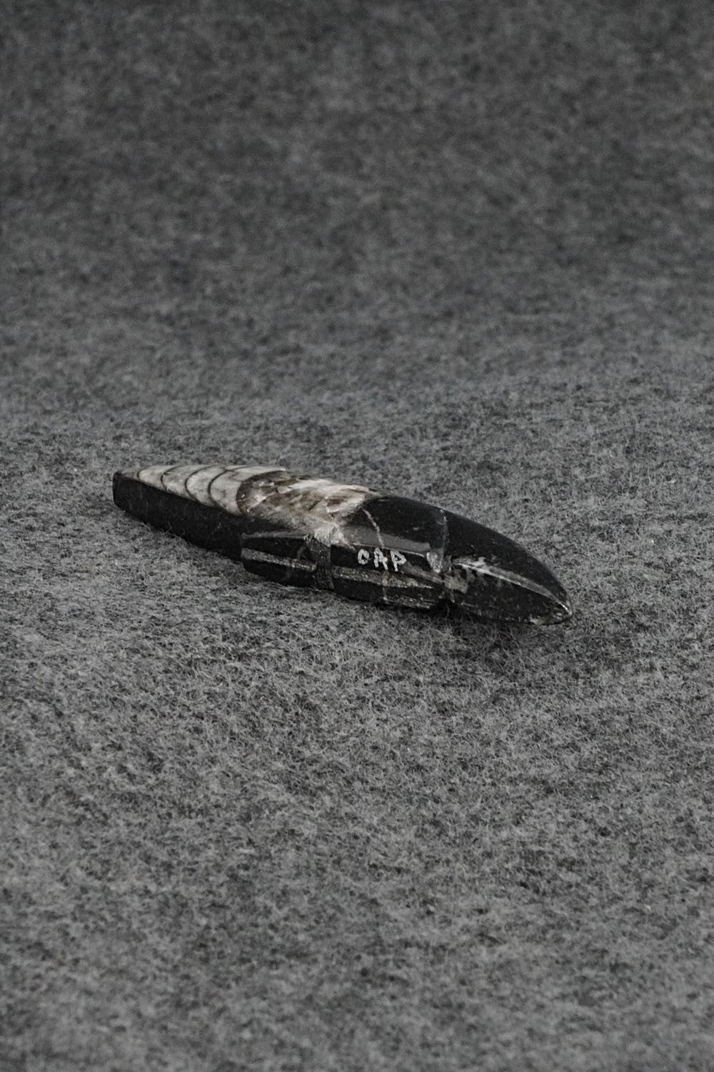 This fox Zuni fetish was carved by Abby Quam Panteah. The bottom is signed CAP.