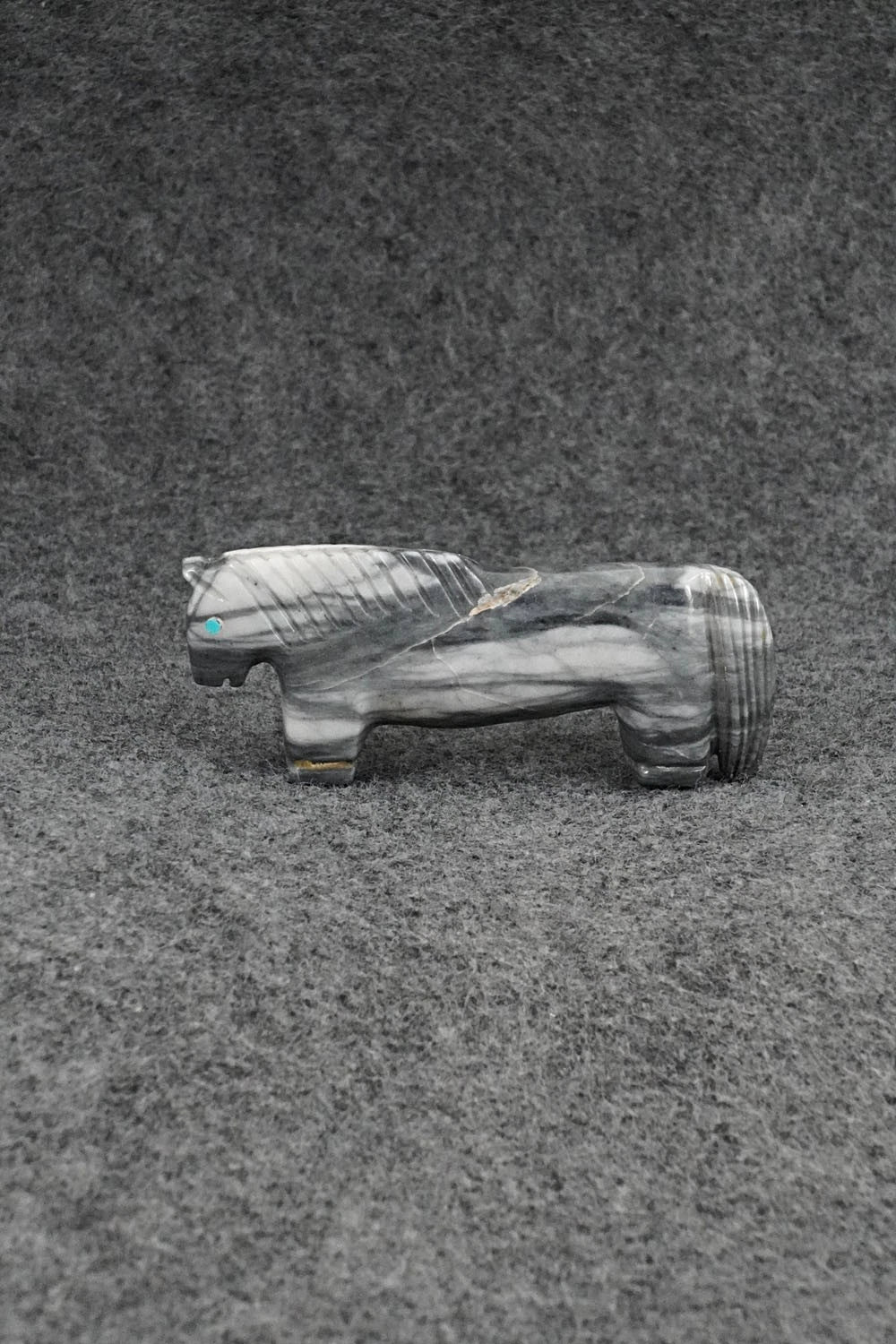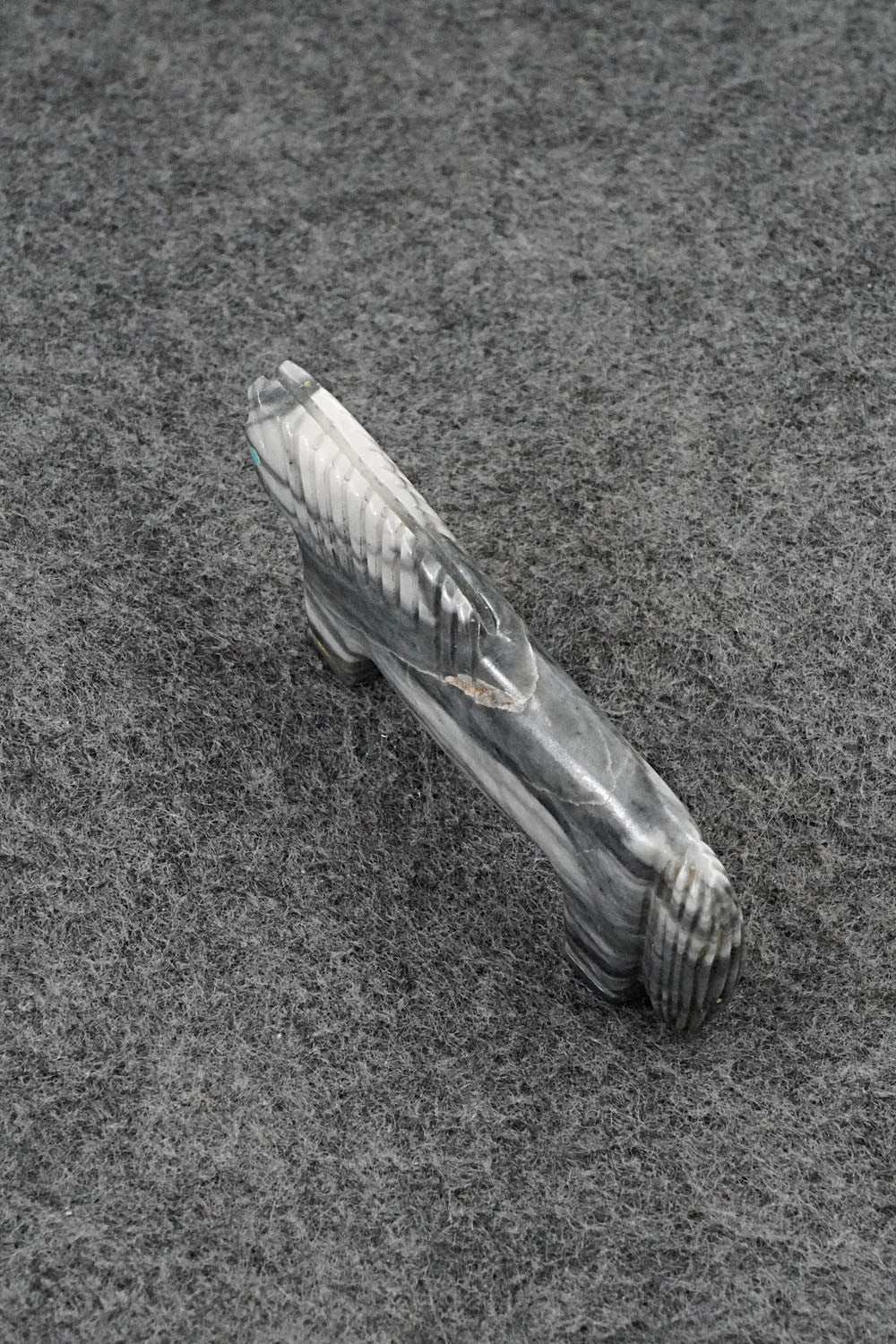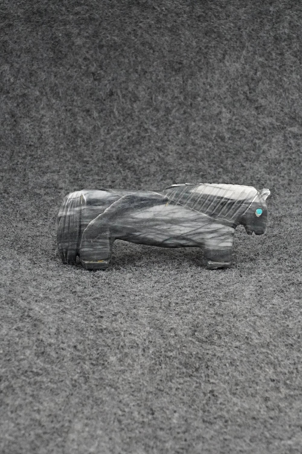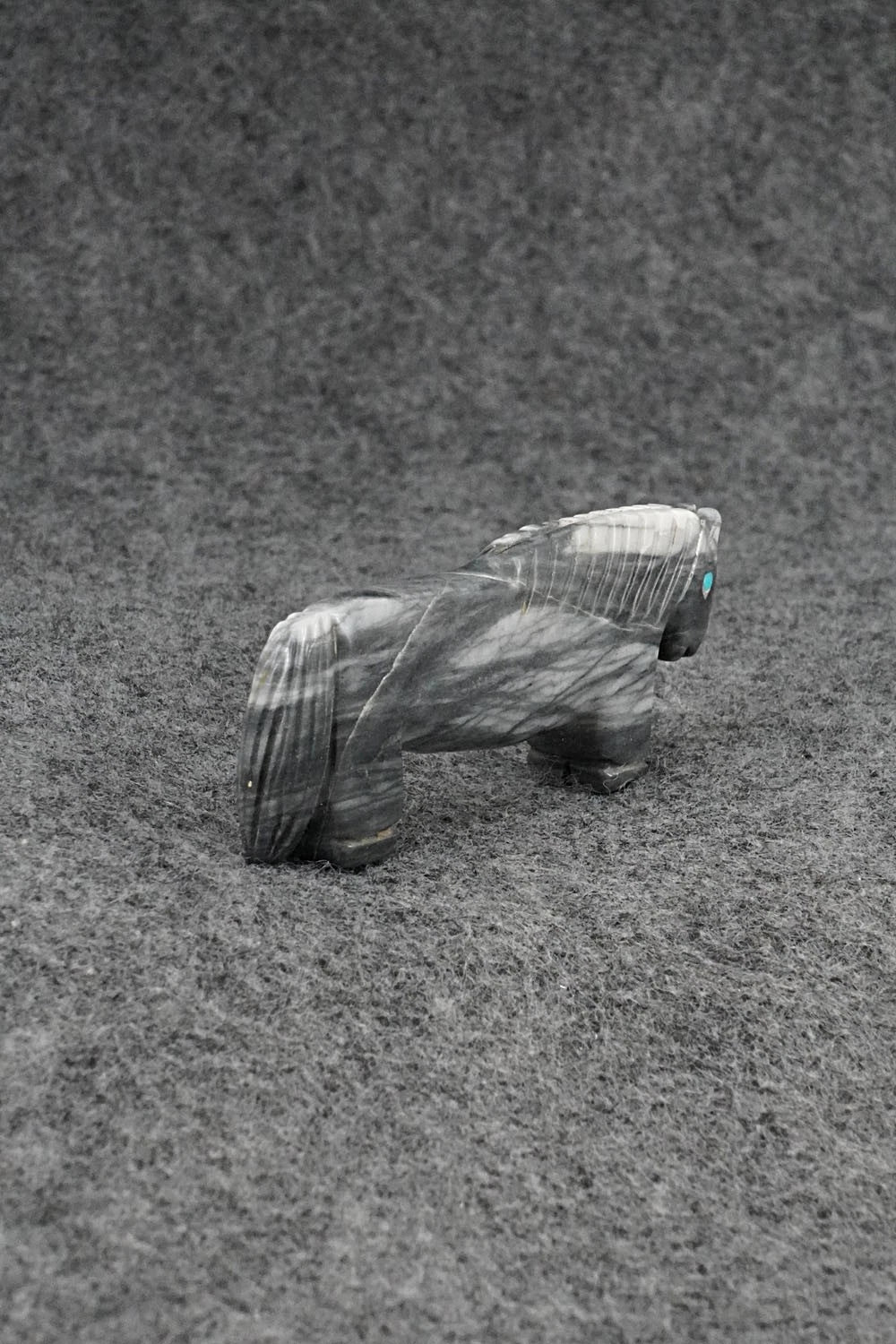 This horse Zuni fetish was carved by Brian Yunie. The bottom is signed BJ.