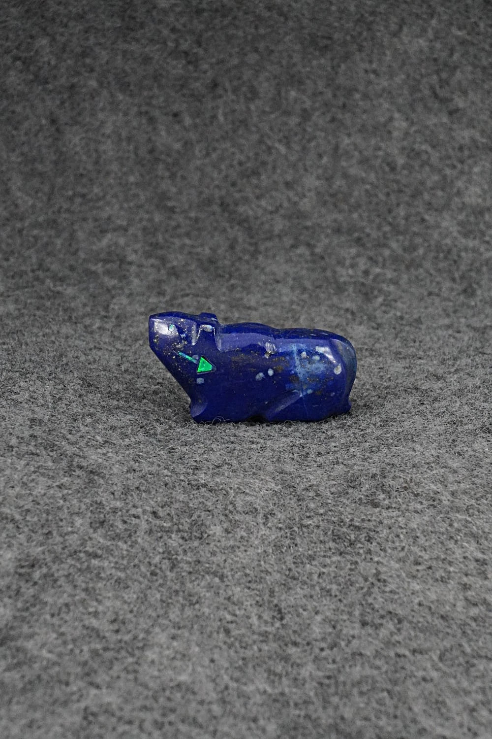 This mountain lion with arrow inlay design Zuni fetish was carved by Abby Panteah Quam. The bottom is signed CAP.