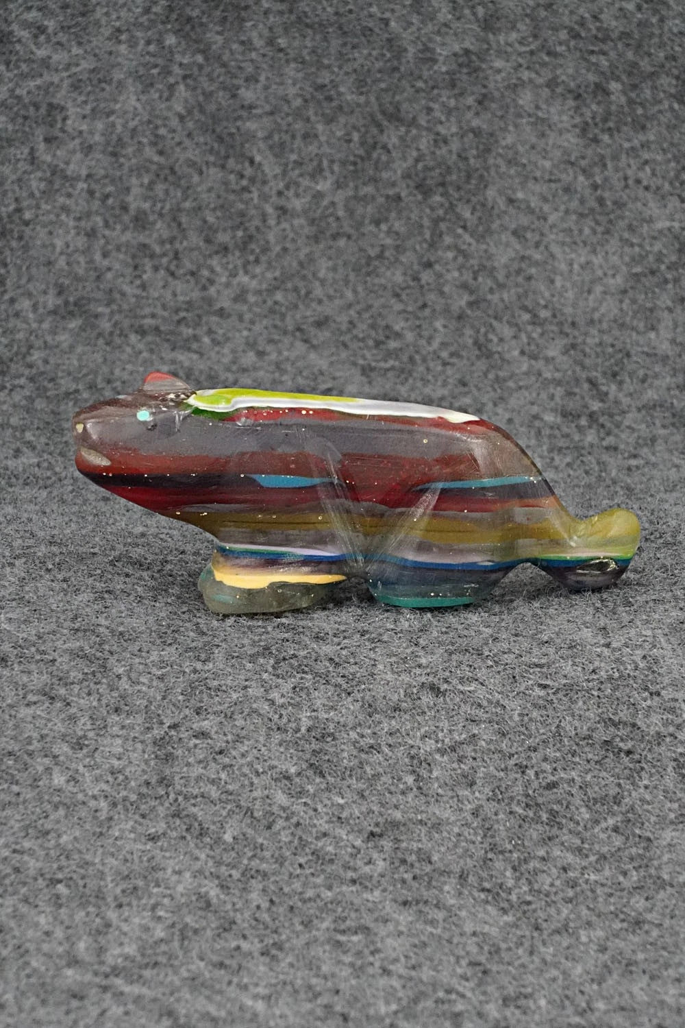 This mountain lion Zuni fetish was carved by David Chavez. The bottom is signed DC.