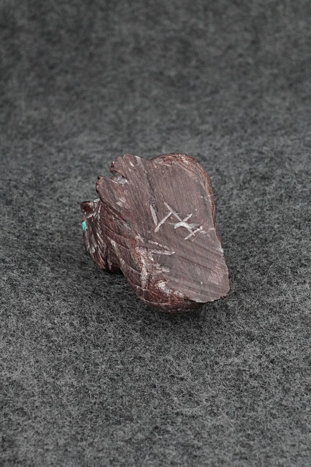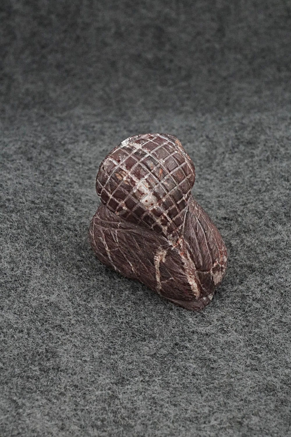 This owl Zuni fetish was carved by Jonas Hustito. The bottom is signed JH and Z.