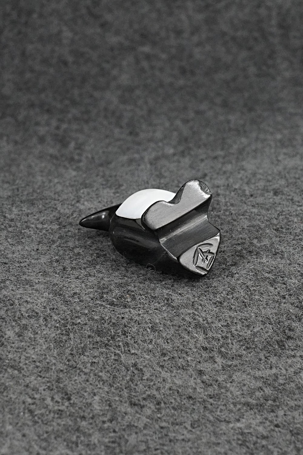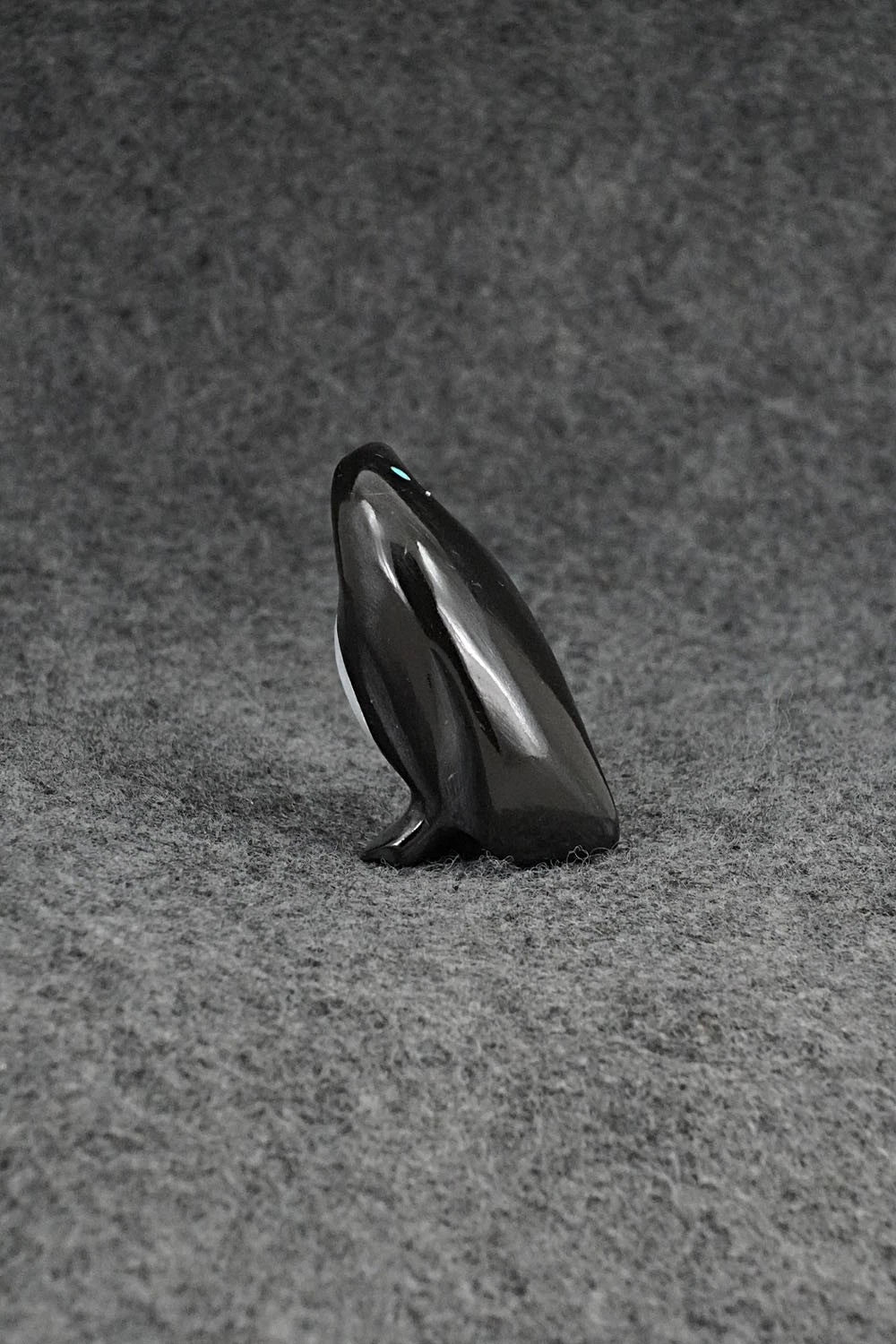This penguin Zuni fetish was carved by Calvert Bowannie. The bottom is signed CB.