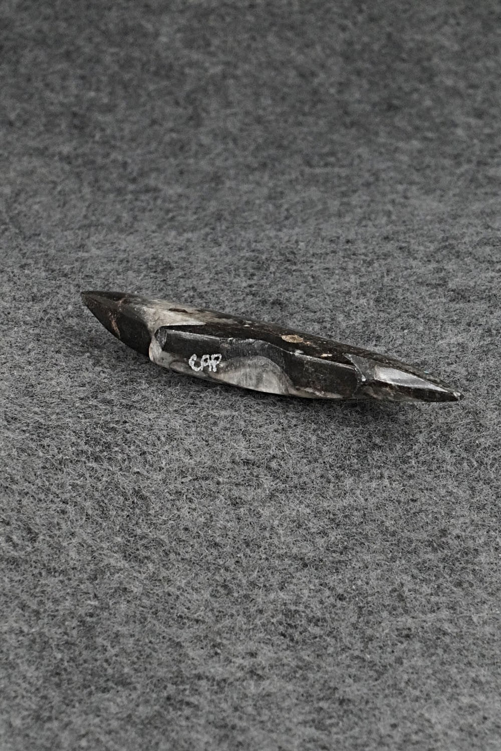 This roadrunner Zuni fetish was carved by Abby Quam Panteah. The bottom is signed CAP.
