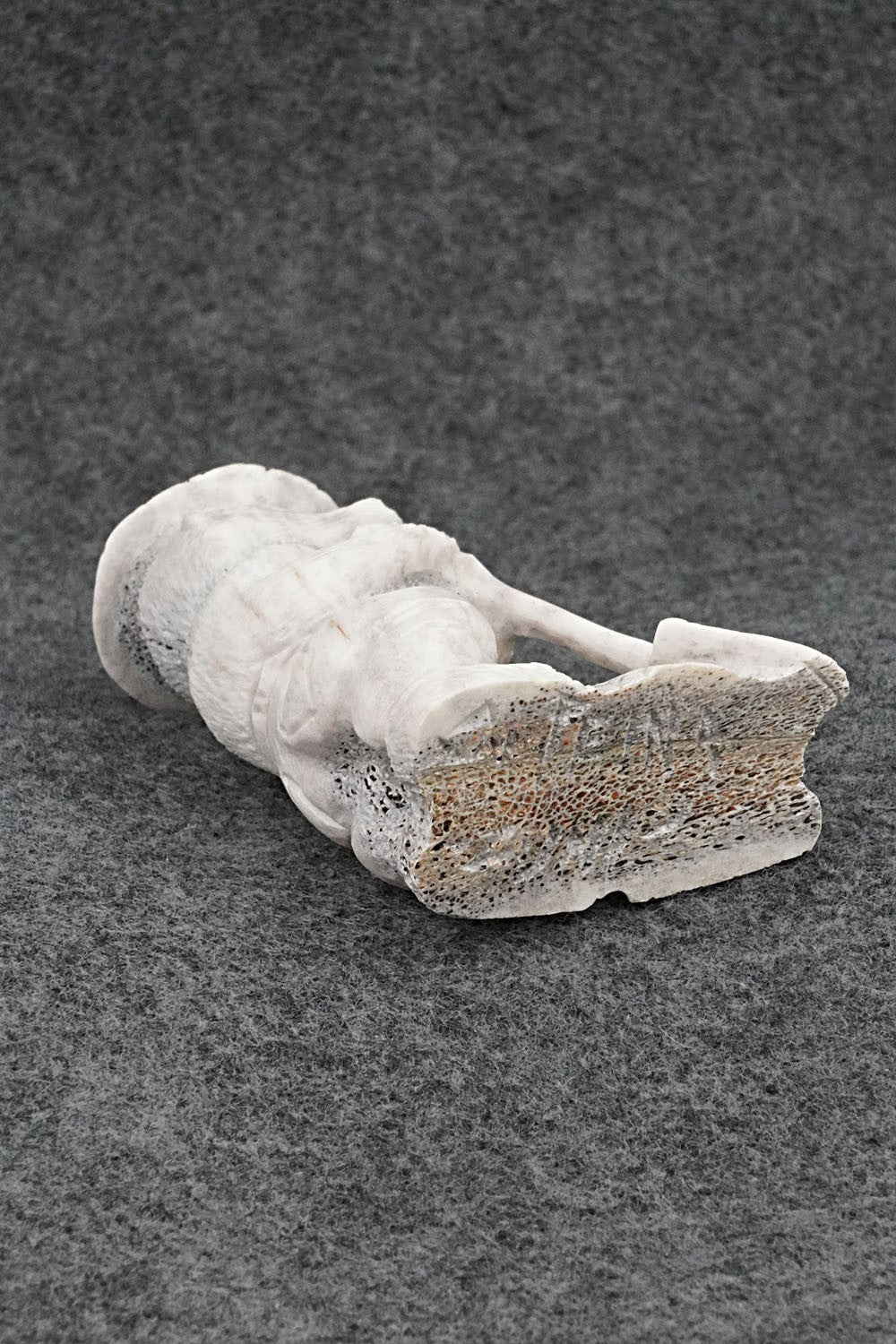 This Smokey Bear with shovel Zuni fetish was carved by Chris Peina. The bottom is signed C Peina and Zuni.