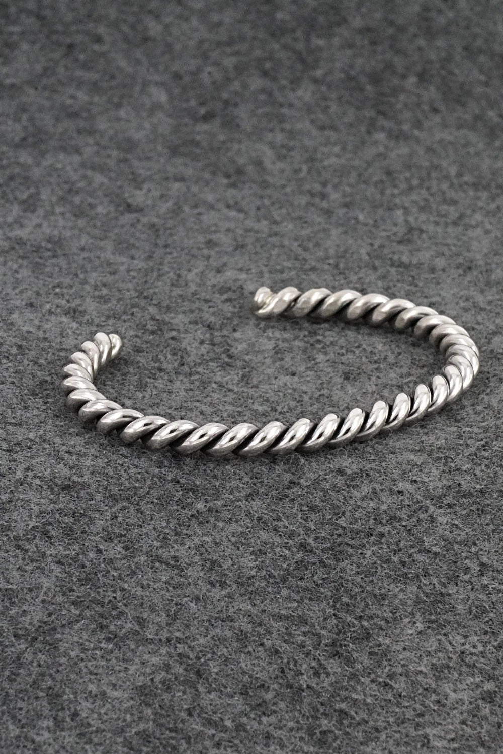This bright-polish sterling silver bracelet was made by Navajo silversmith Elaine Tahe.