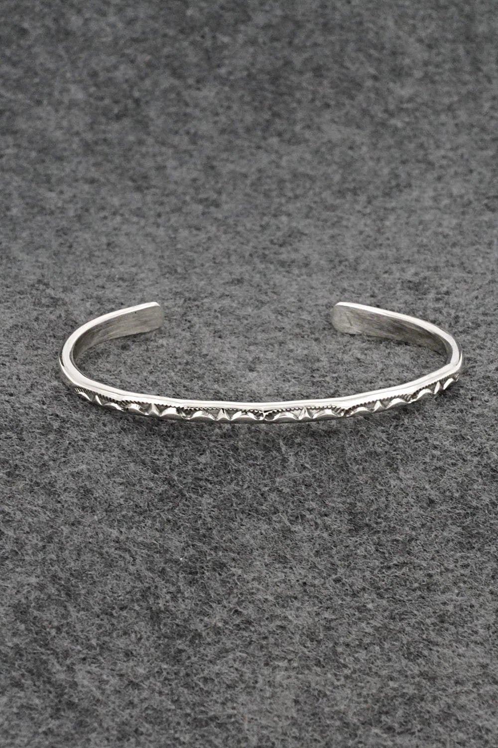 This bright-polish sterling silver bracelet was made by Navajo silversmith Elaine Tahe.