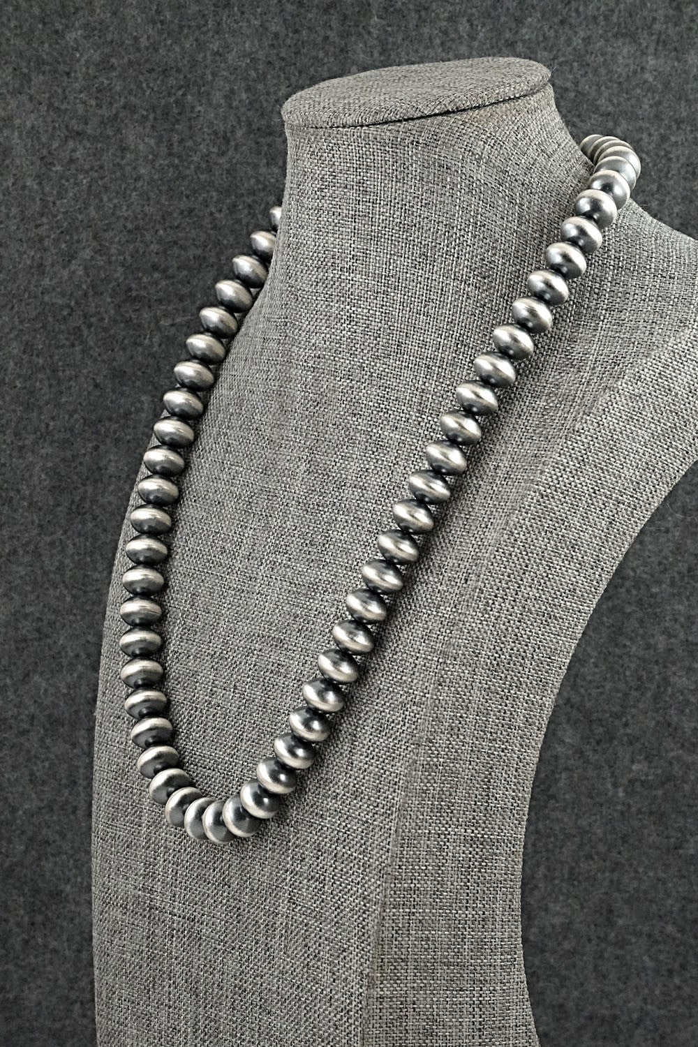 This stunning brushed-finish sterling silver Navajo Pearl necklace was made by Navajo silversmith Tonisha Haley. Signed TH and stamped sterling.