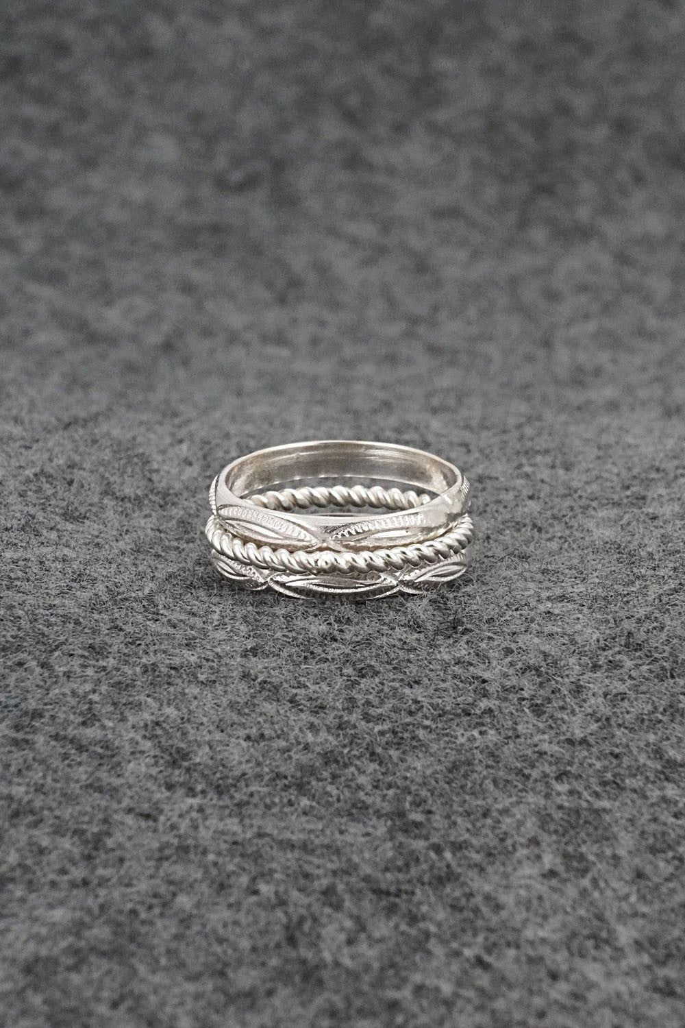 These three sterling silver rings were made by Navajo silversmith Charles Dubois.