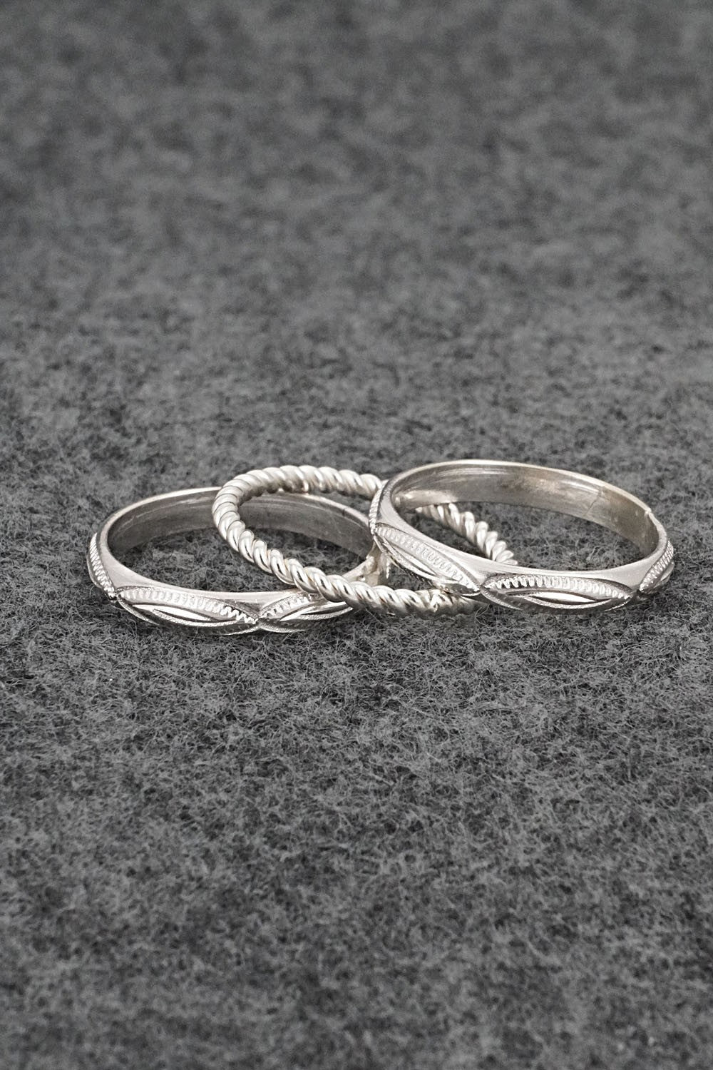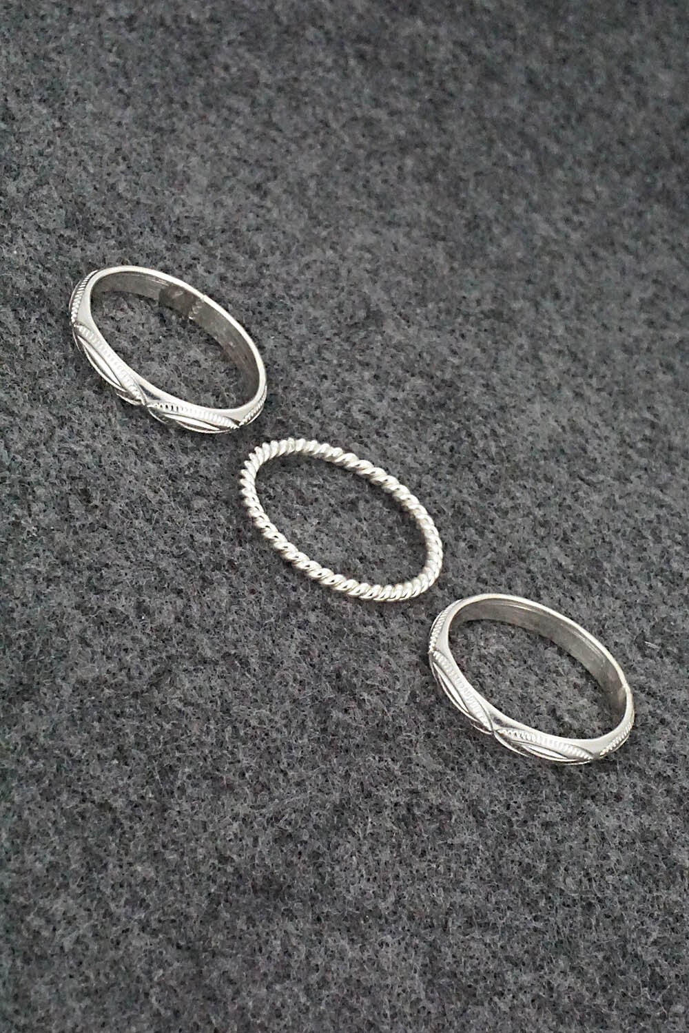 These three sterling silver rings were made by Navajo silversmith Charles Dubois.