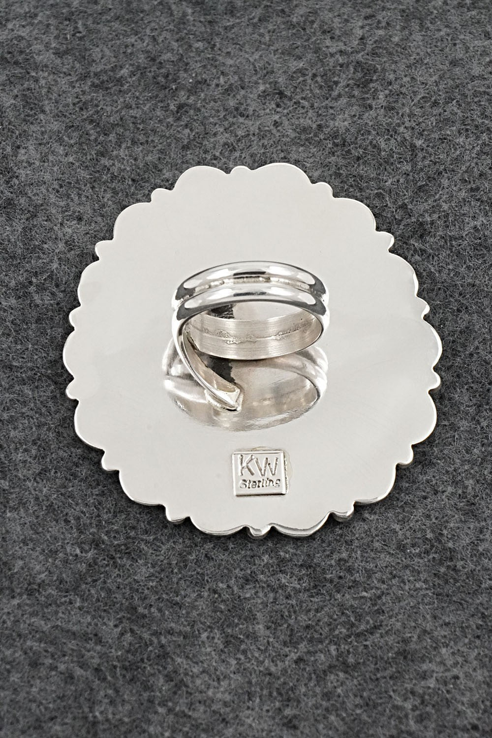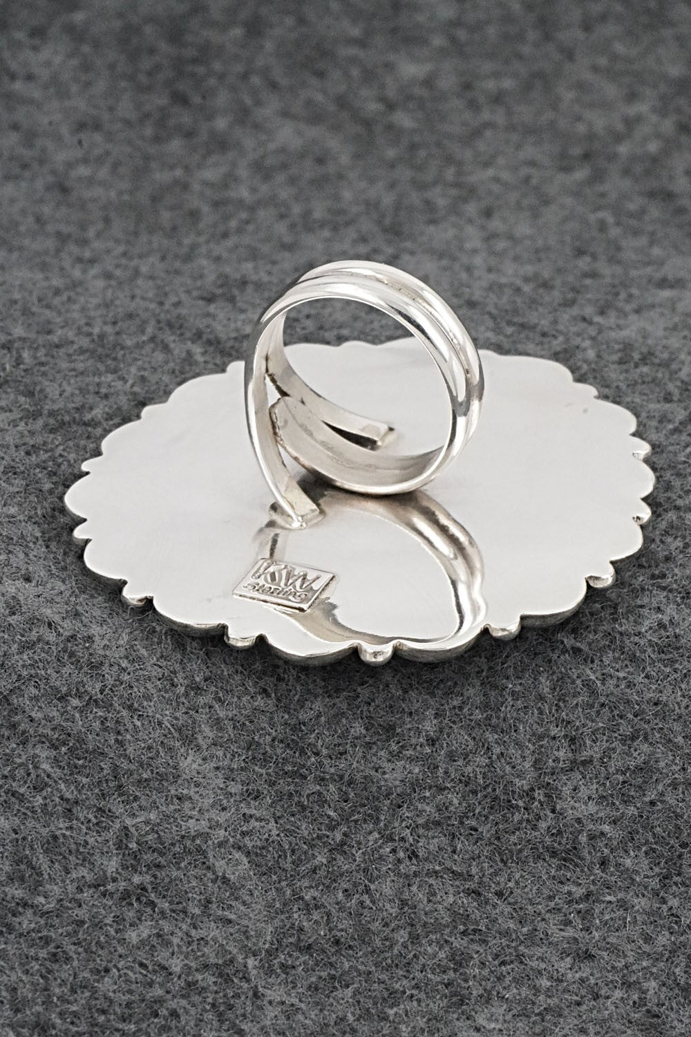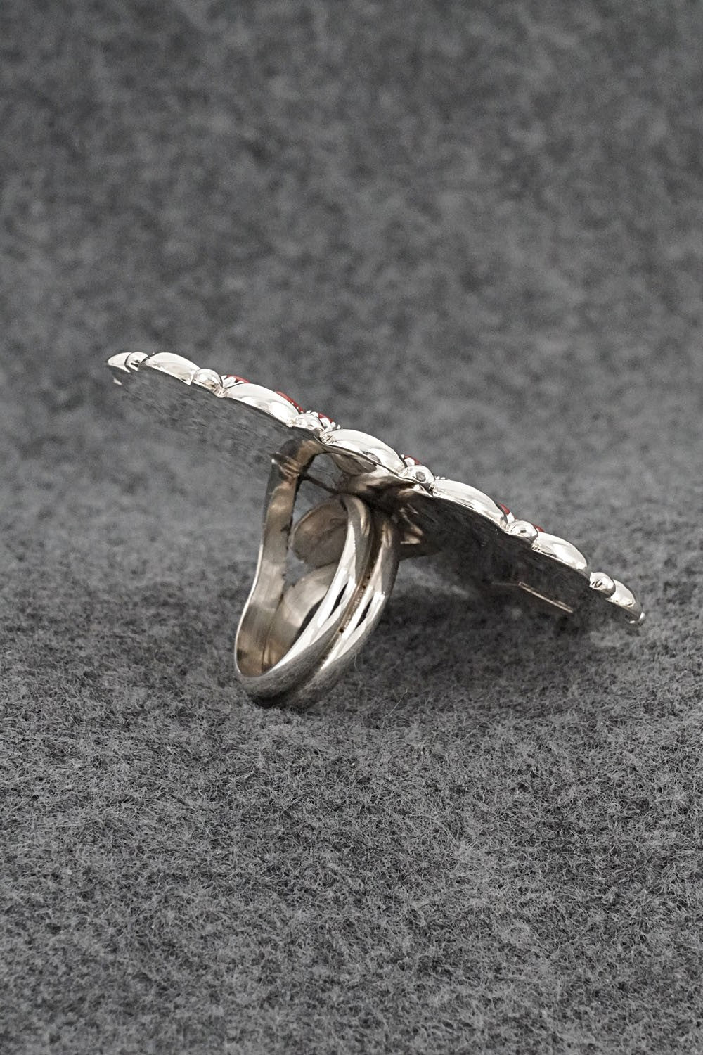 Turquoise, Coral & Sterling Silver Ring - Kyle Wilson - Size 7 Adjustable