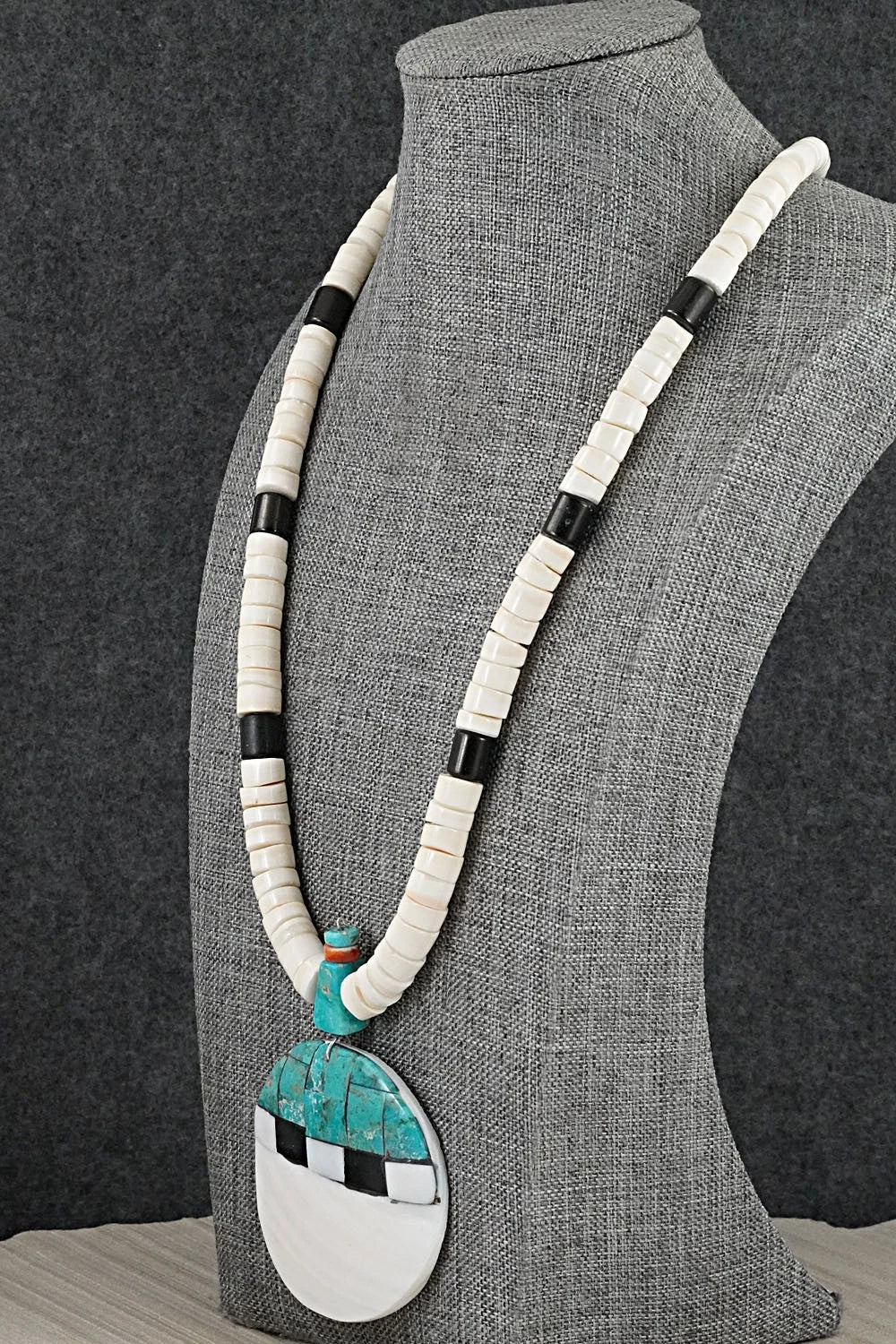 Turquoise, Melon Shell and Sterling Silver Necklace - Lupe Lovato