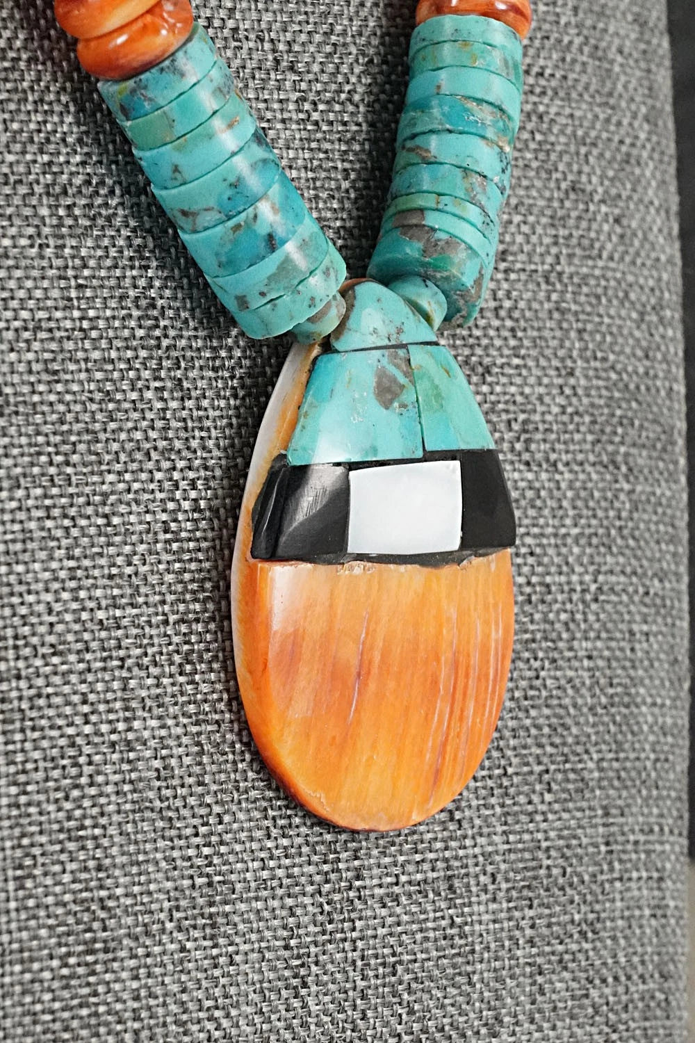 Turquoise, Spiny Oyster and Sterling Silver Necklace - Lupe Lovato