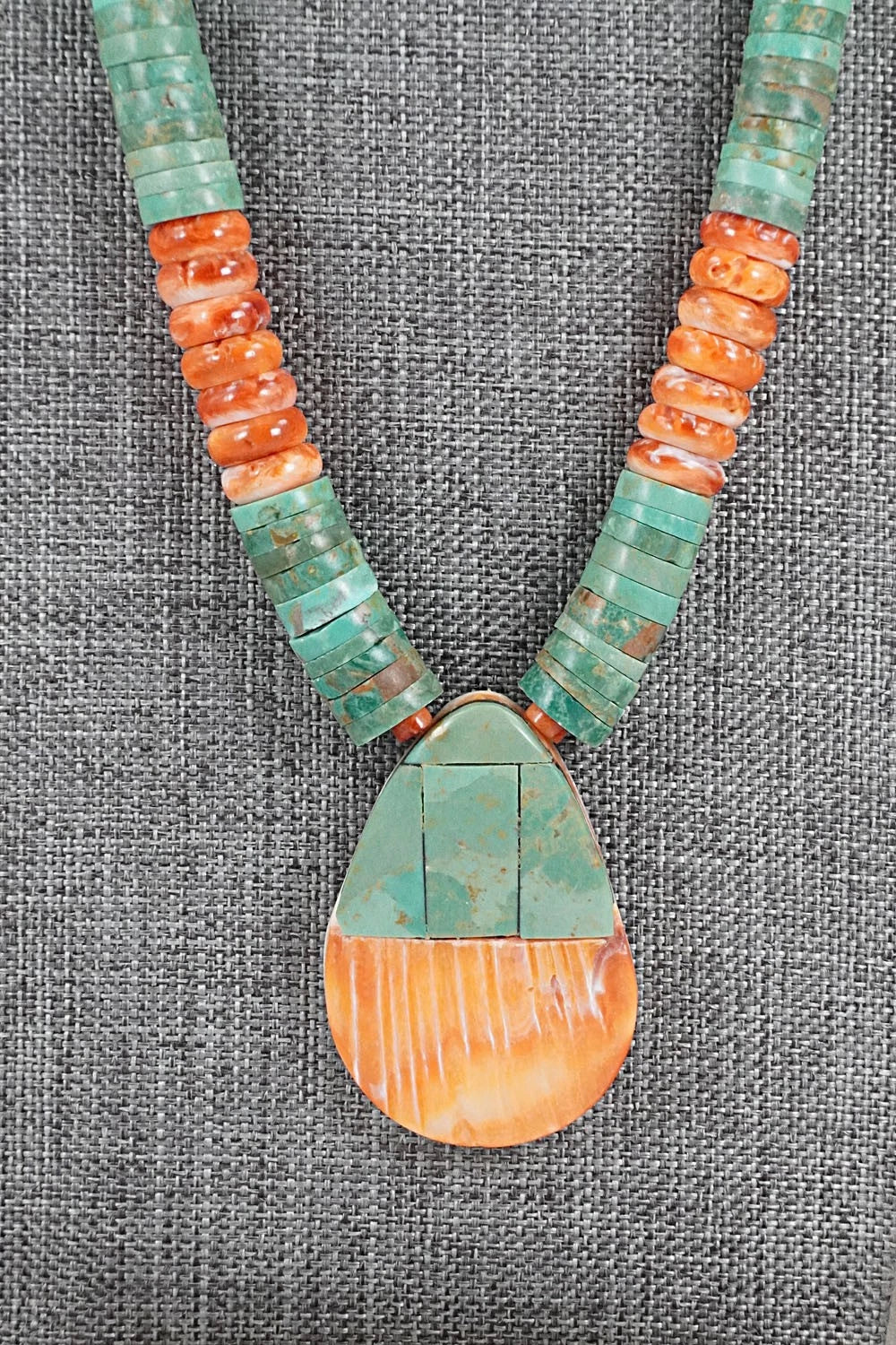 Turquoise, Spiny Oyster and Sterling Silver Necklace - Lupe Lovato