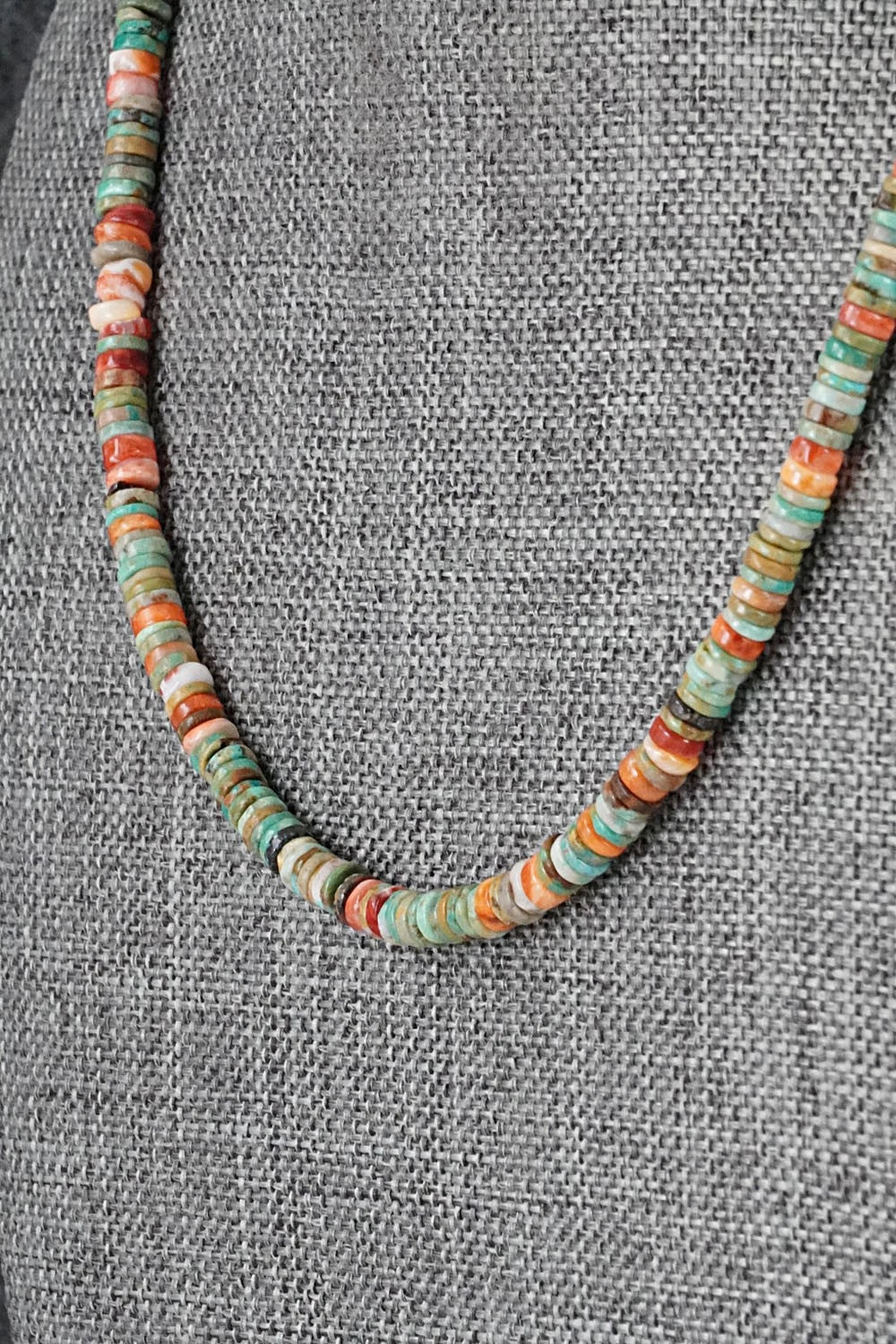 Turquoise, Spiny Oyster & Sterling Silver Necklace 17" - Doreen Jake