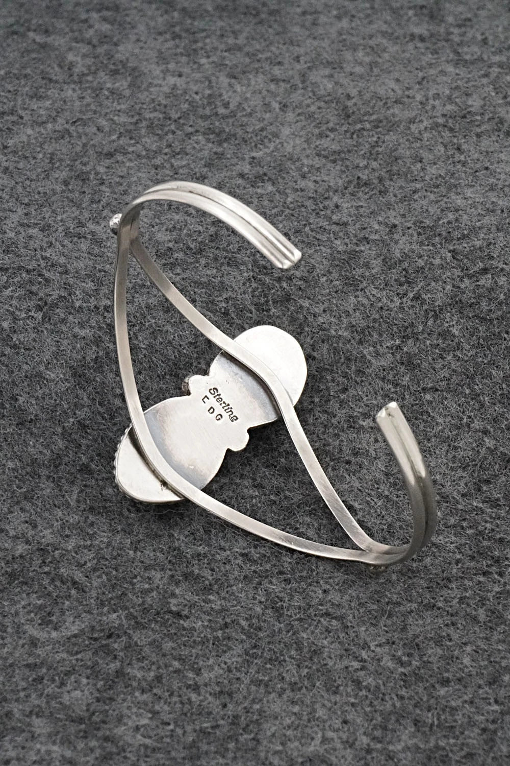 This Egyptian turquoise and brushed-finish sterling silver bracelet was made by Navajo silversmith Eugene Gruber. The back is signed EDG and stamped Sterling.
