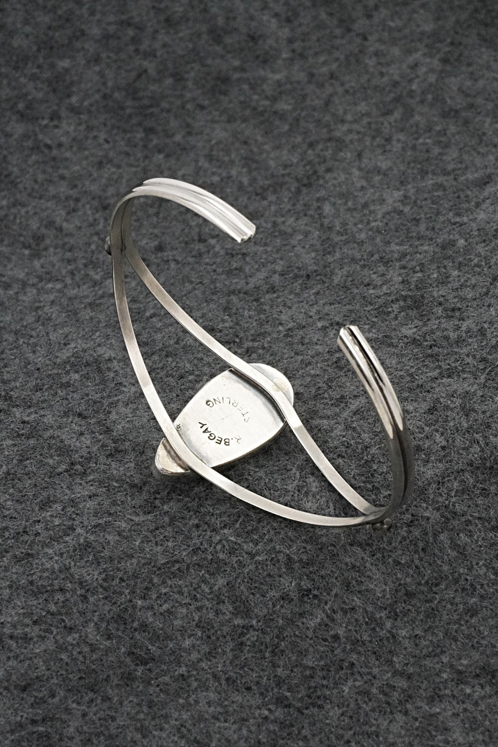 This Egyptian turquoise and bright-polish sterling silver bracelet was made by Navajo silversmith Rena Begay. The back is stamped R. Begay and Sterling.