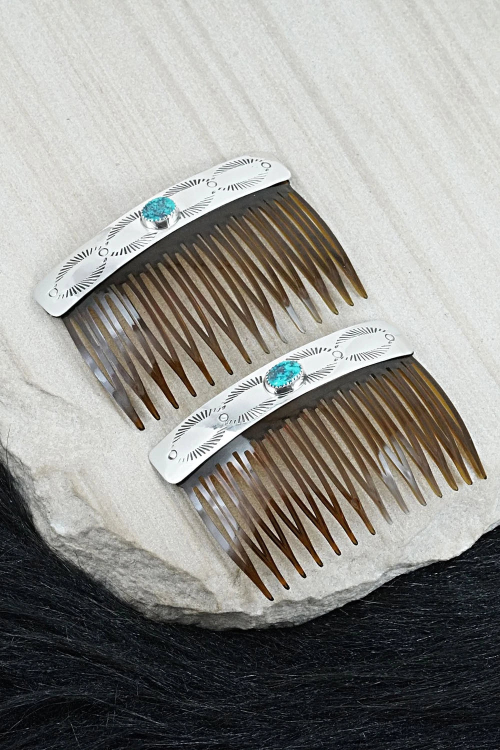 Turquoise & Sterling Silver Hair Combs - Jolene Begay