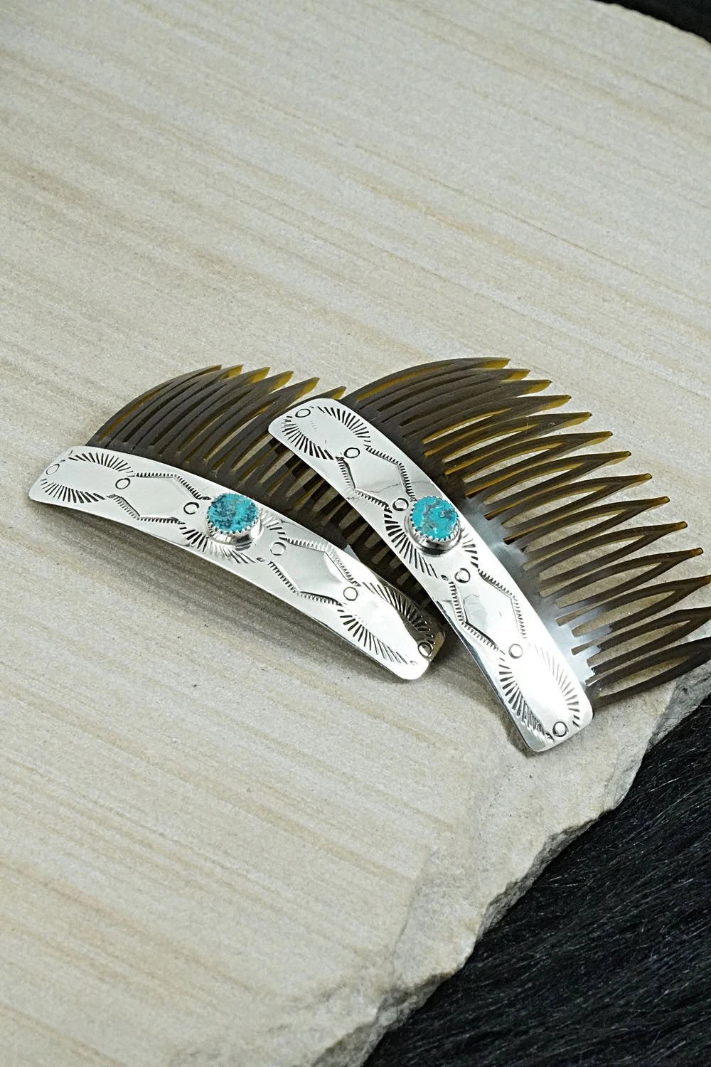 Turquoise & Sterling Silver Hair Combs - Jolene Begay