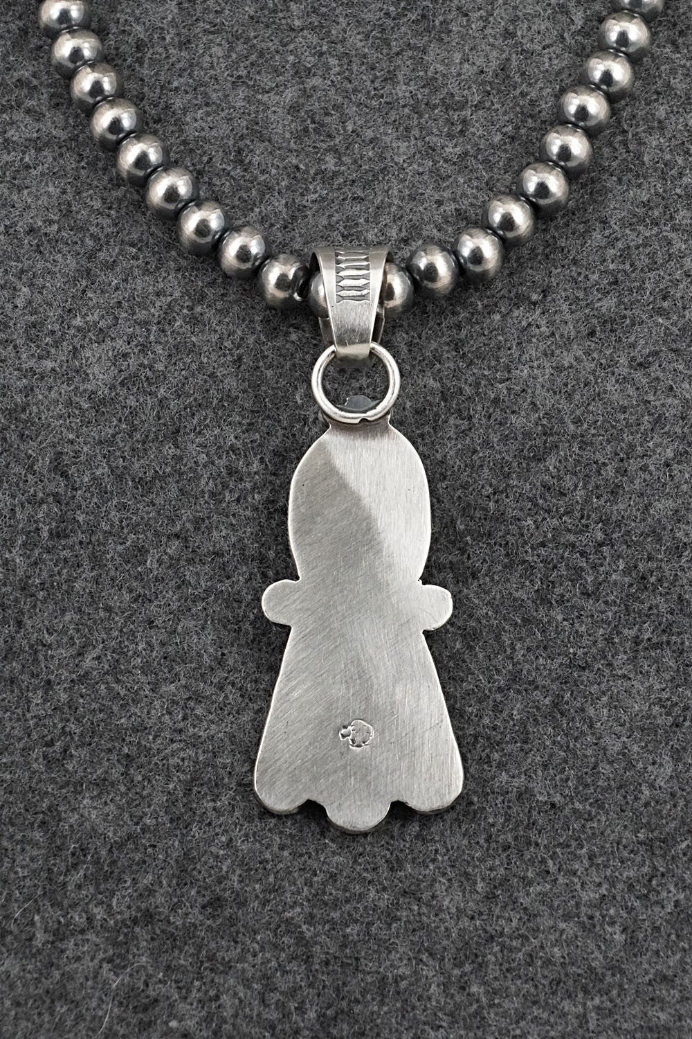 This Sonoran Gold turquoise and brushed-finish sterling silver necklace was made by Navajo silversmith Verley Betone. The back is stamped R.B. and .925.