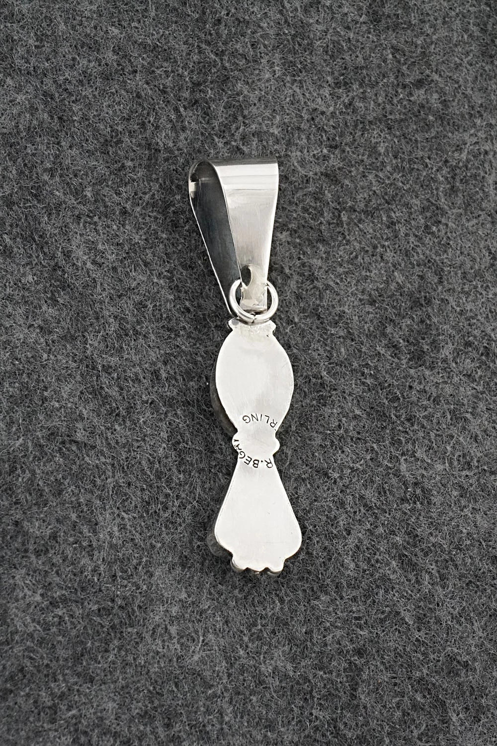 This beautiful Egyptian turquoise and bright-polish sterling silver pendant was made by Navajo silversmith Rena Begay. The back is stamped R. Begay and sterling.