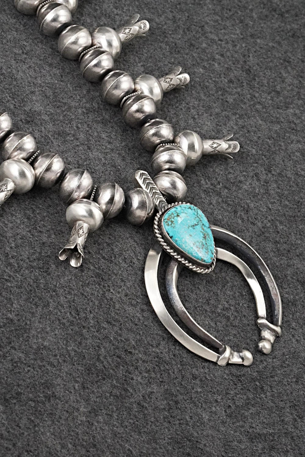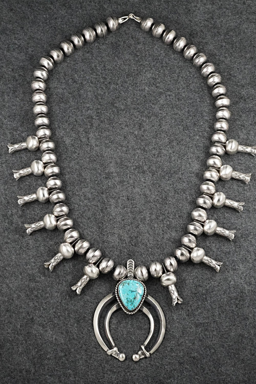 Turquoise & Sterling Silver Squash Blossom Necklace - Chris Hale