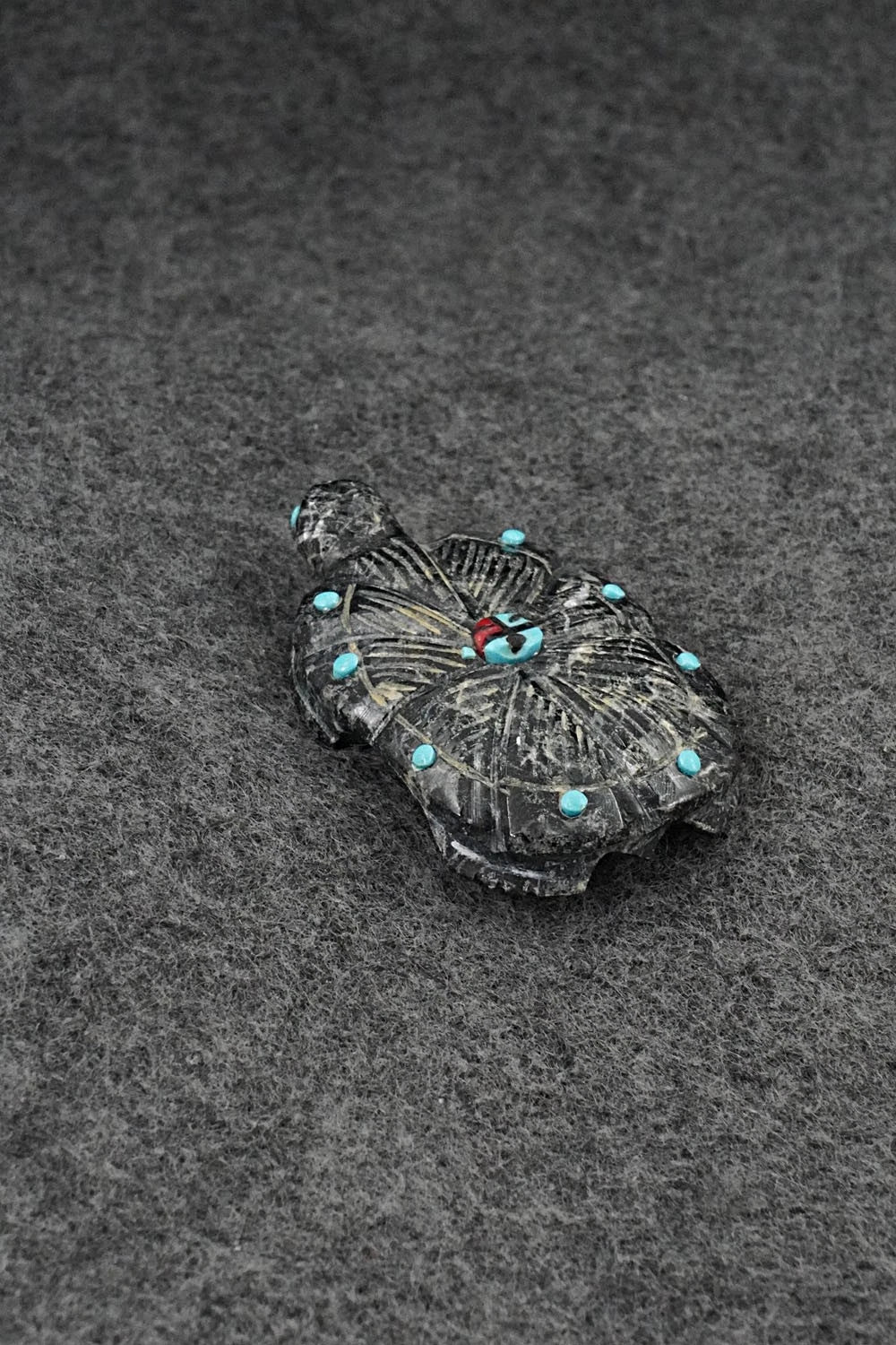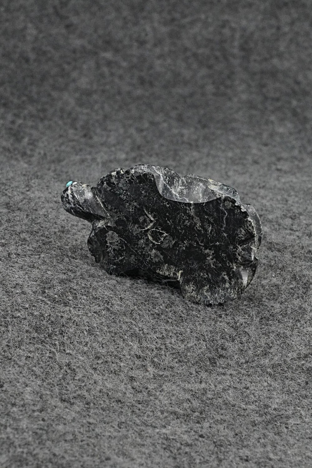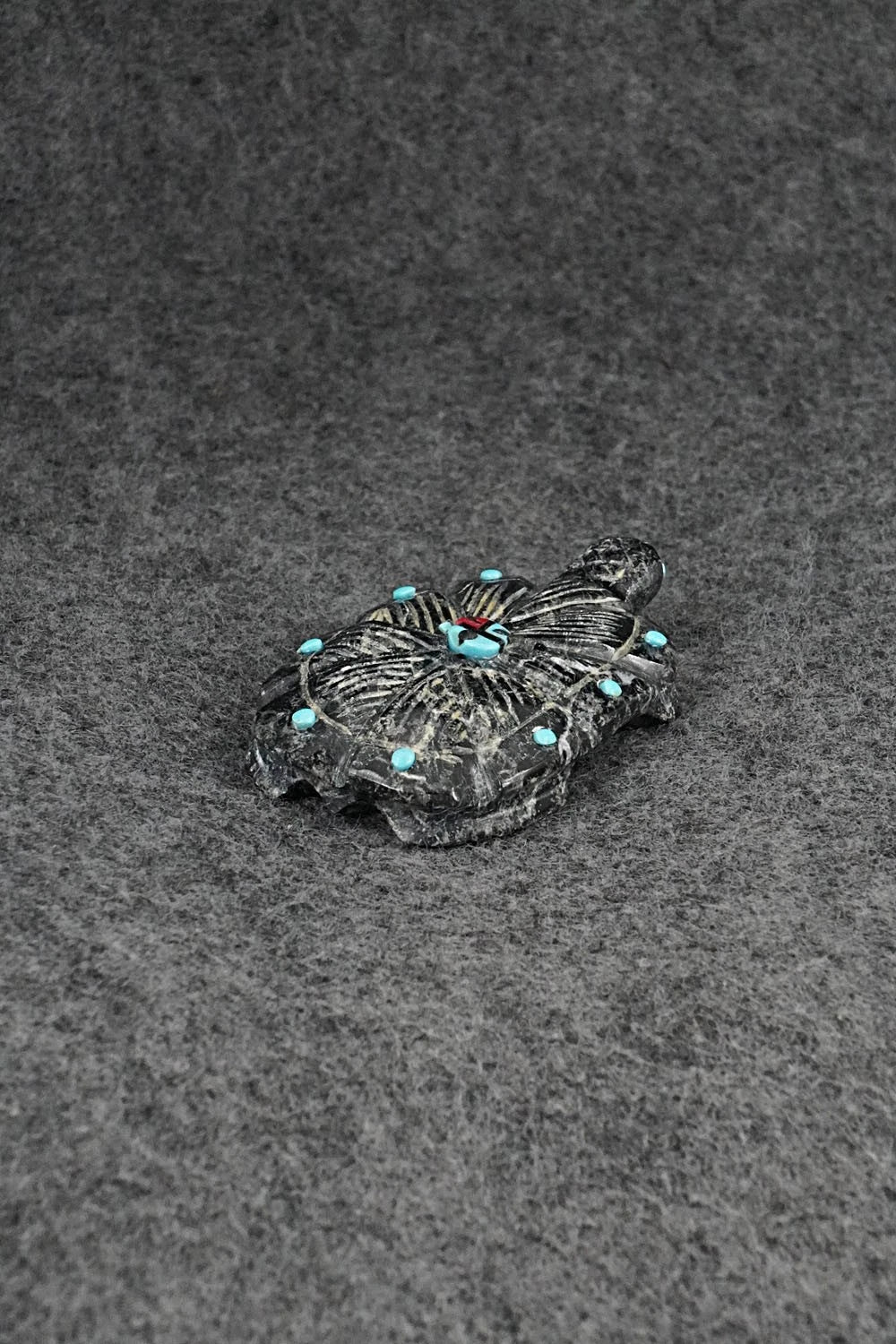 This turtle Zuni fetish was carved by Danette Laate. The bottom is signed DL.