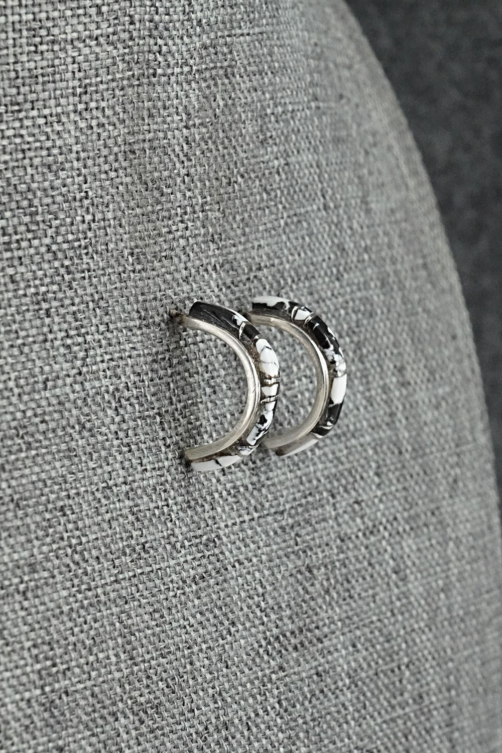 This pair of White Buffalo and sterling silver earrings were made by Zuni silversmith Terrance Panteah.