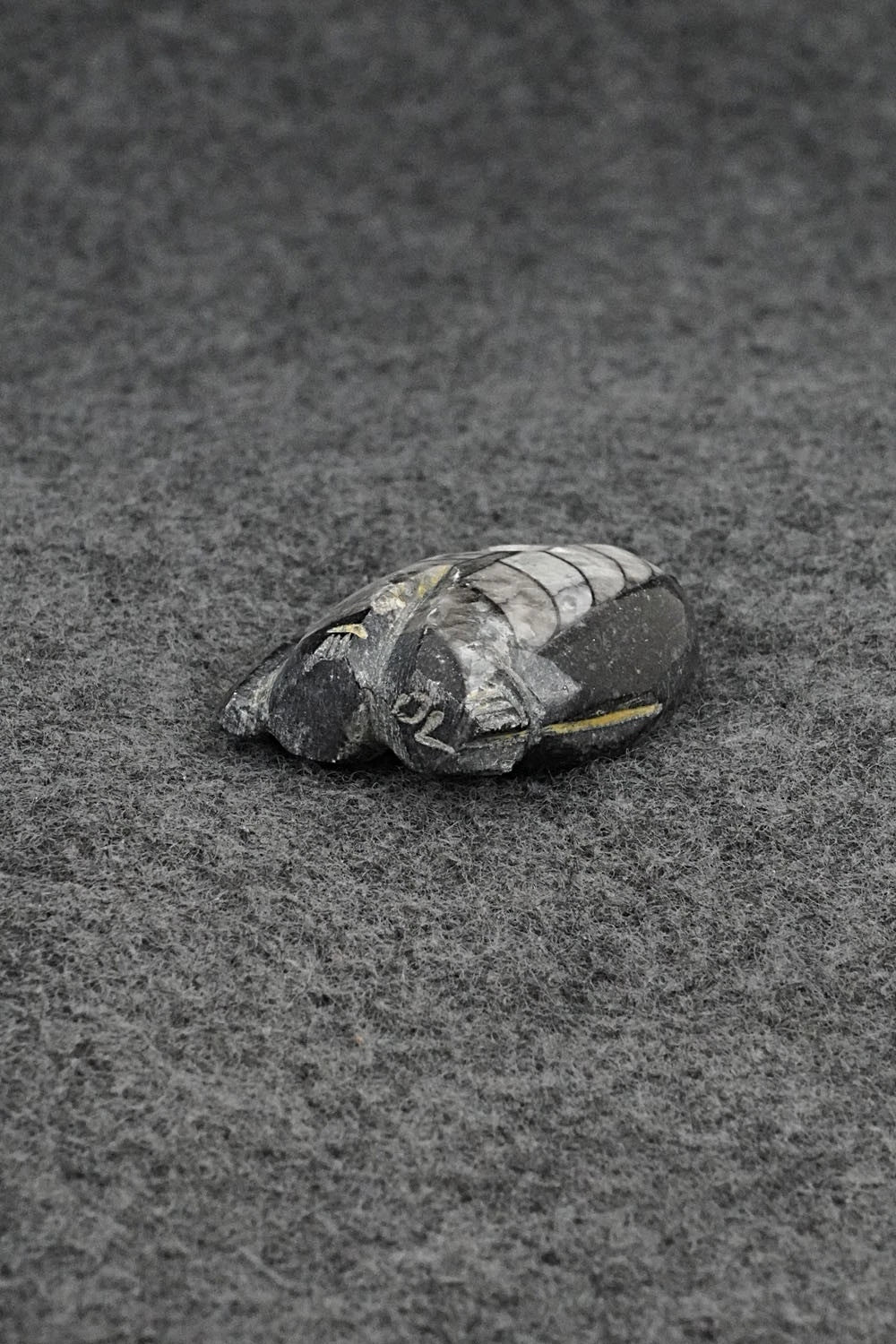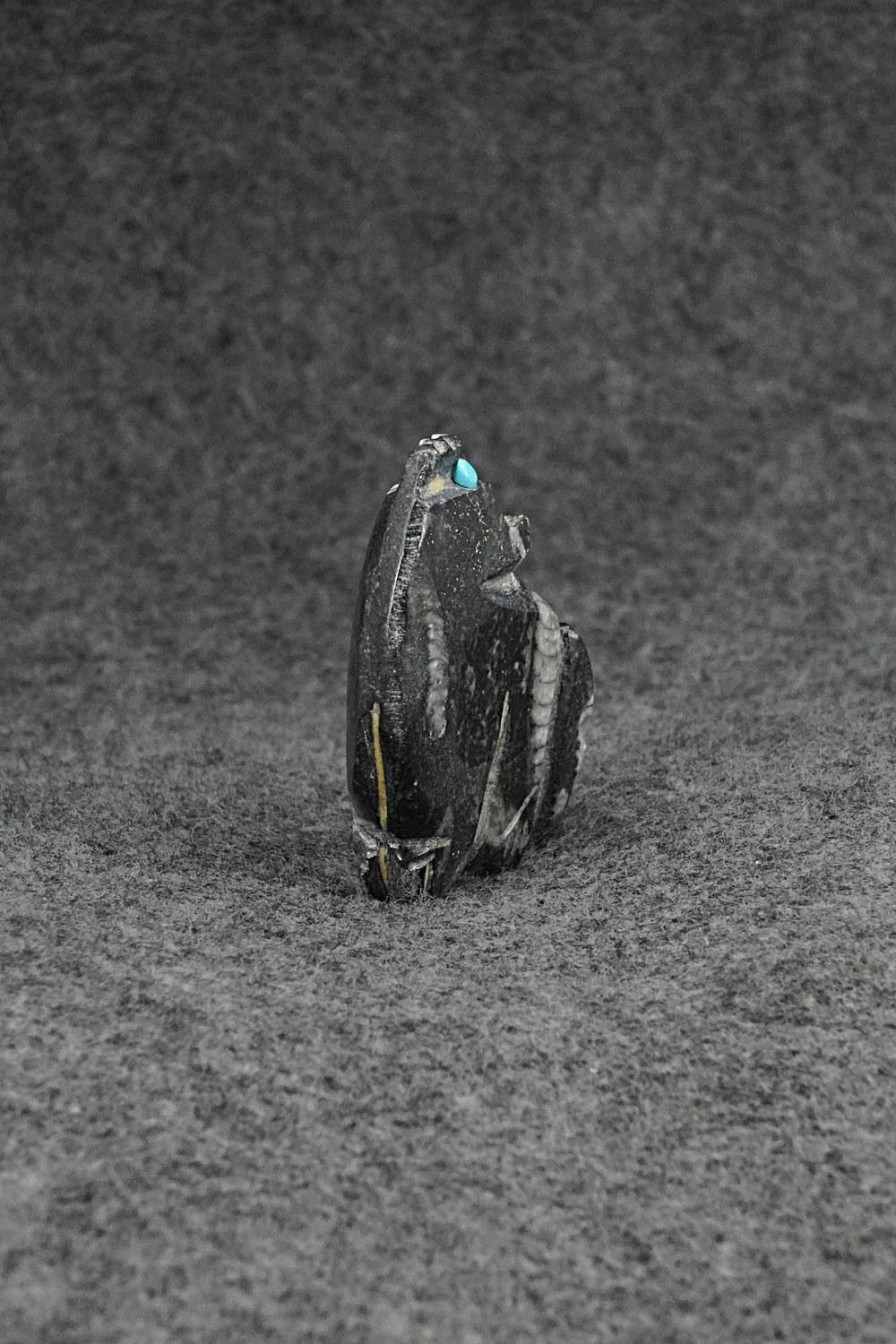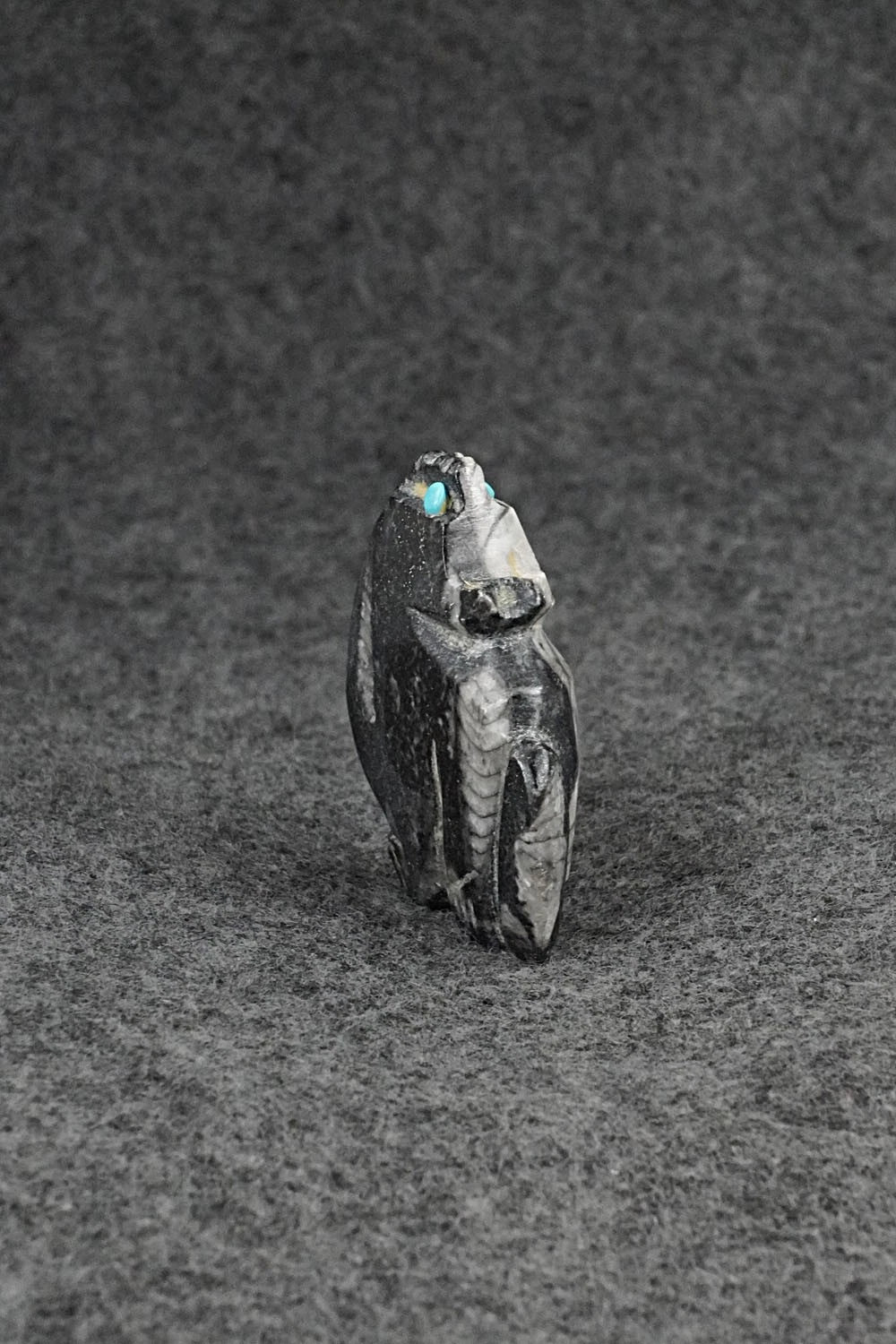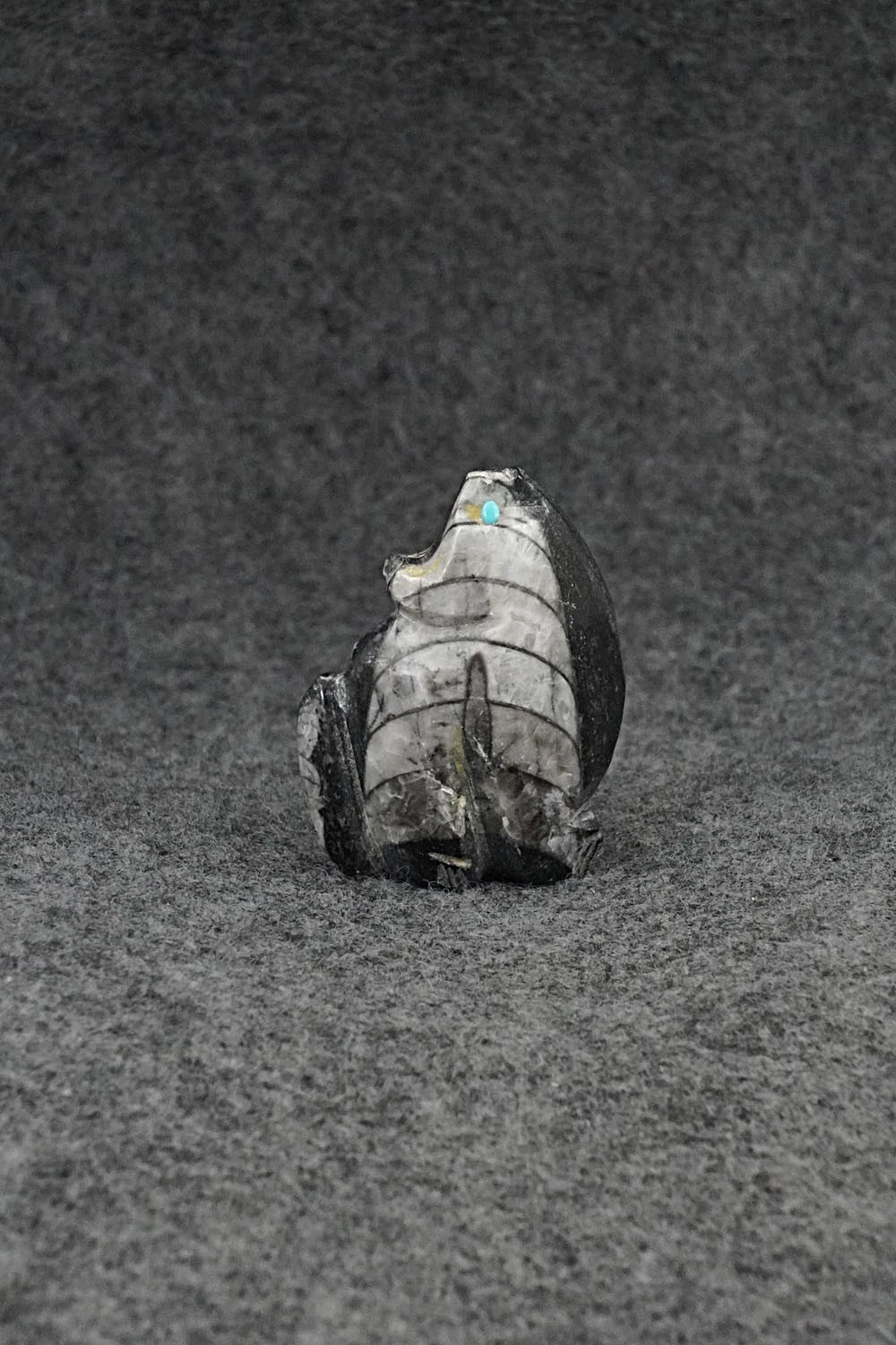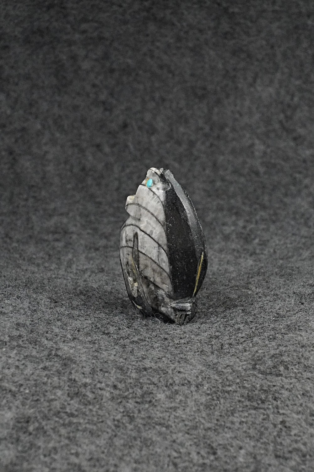 This wolf Zuni fetish was carved by Danette Laate. The bottom is signed DL.