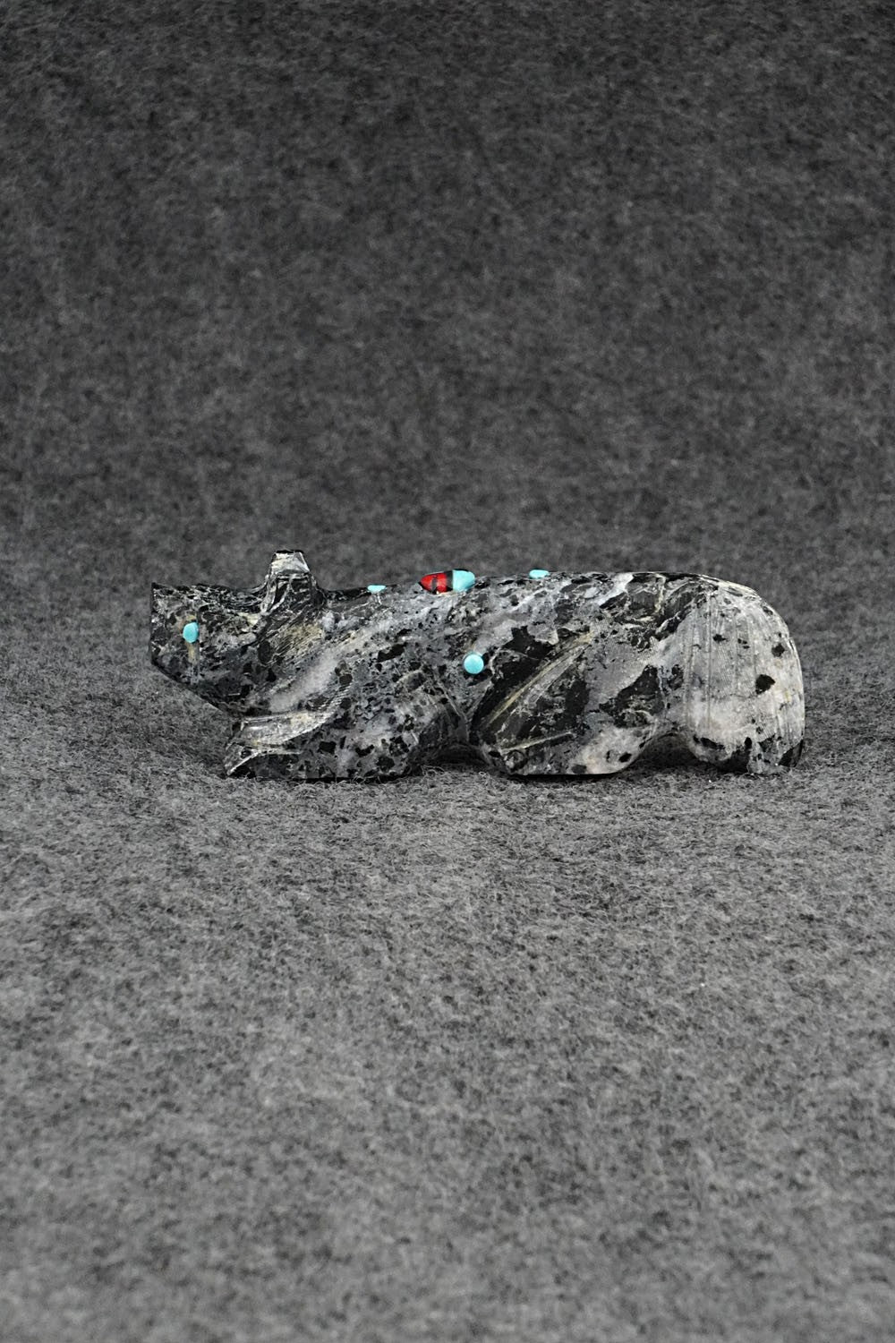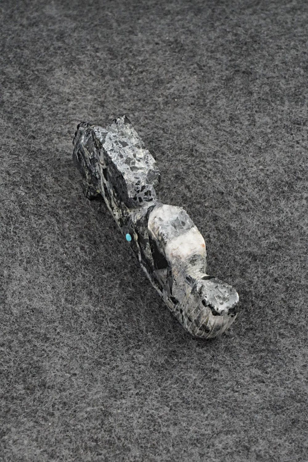 This wolf Zuni fetish was carved by Dannette Laate. The bottom is signed DL.