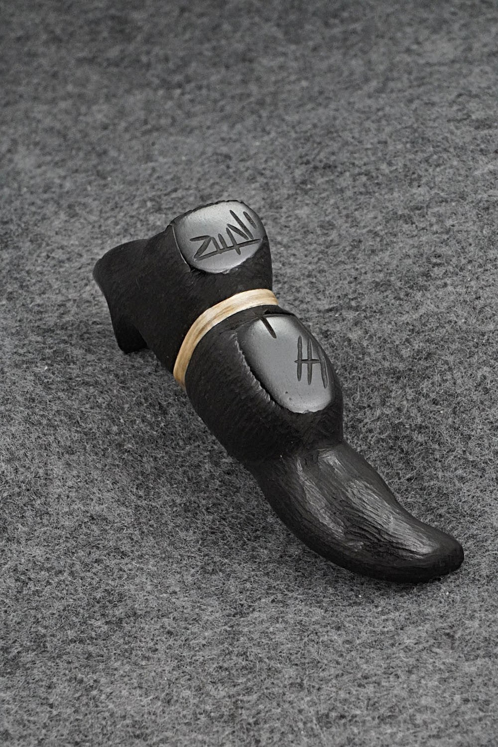 This wolf Zuni fetish was carved by Herbert Halate. The bottom is signed H and Zuni.