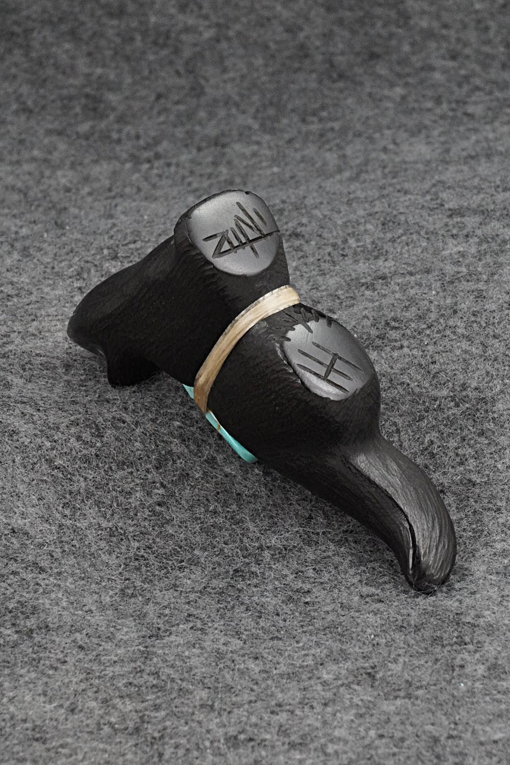 This wolf Zuni fetish was carved by Herbert Halate. The bottom is signed H and Zuni.